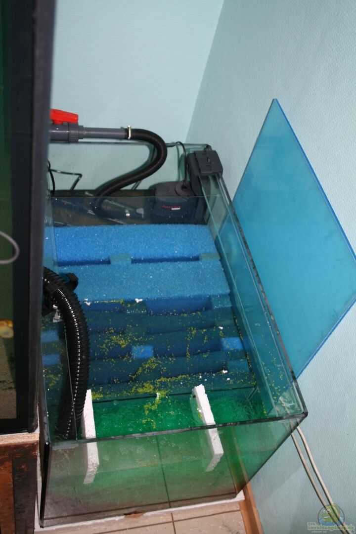 In der Klarkammer befinden sich die beiden 300W Jägerheizstäbe und die AquaClear5000 Pumpe!