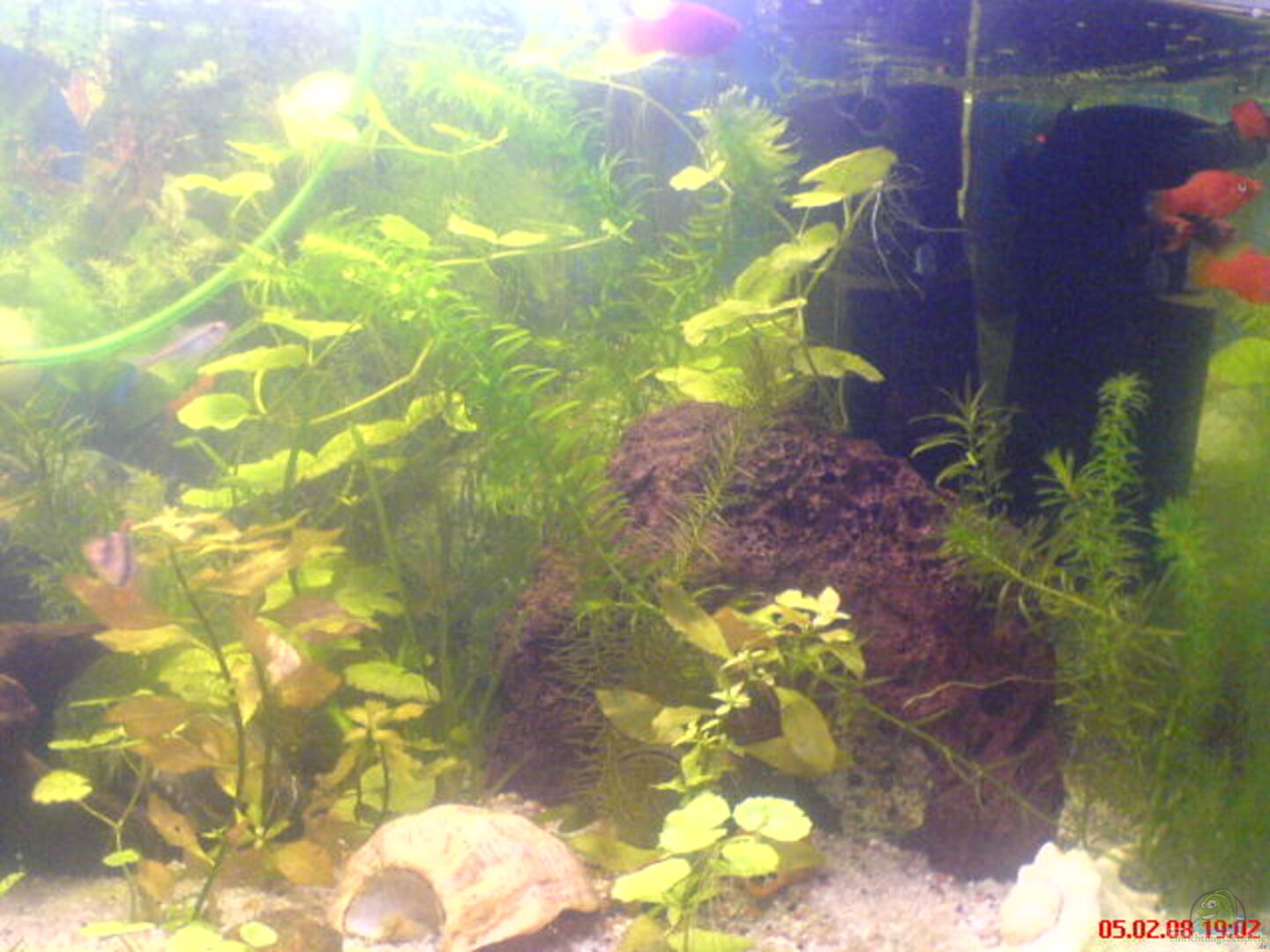 Die Muscheln würde ich auch herausnehmen, die härten das Wasser nur unnötig auf, was Deinen Salmlern nicht zu Gute kommt. Bei den Salmlern würde ich an Deiner Stelle auch auf eine Art setzen und nicht zwei Schwärme in "Halbstärke" haben, sondern lieber einen Schwarm in ausreichender Individuenzahl.