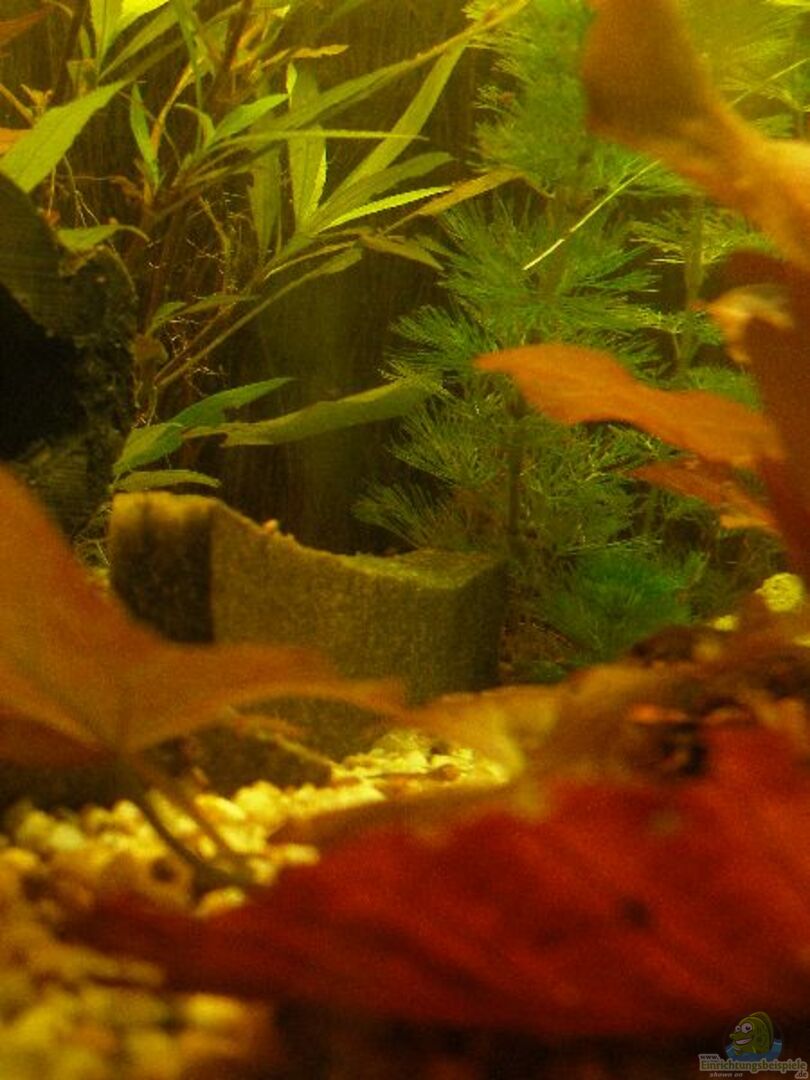 2.12.06 Zusammenfassung der bisherigen Ereignisse (mangels Zeit keine Eintragung bisher): Tigerlotus eingesetzt, kleinen Fischjungen gefunden (Kilifisch? Muss von Versender des Tigerlotus stammen); Libellenlarven gefunden und als Lebendfutter an Fische im anderen Becken verfüttert; Blaualgen entdeckt ohne erkennbaren Grund (Wasserwerte sind ok); Valisnerienart eingesetzt; von Schnecken fast komplett aufgefressene Pflanzen entsorgt; zweite Leuchtröhre ausgetauscht & Beleuchtung verändert; zweiten Zwergschilderwels eingesetzt; Daten & Bilder aktualisiert.