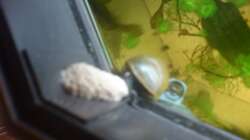 Konnte heute morgen zusehen wie eine meiner Apfelschnecken ein Geleg baut , war sehr interessant zu sehen wie sie das machen .