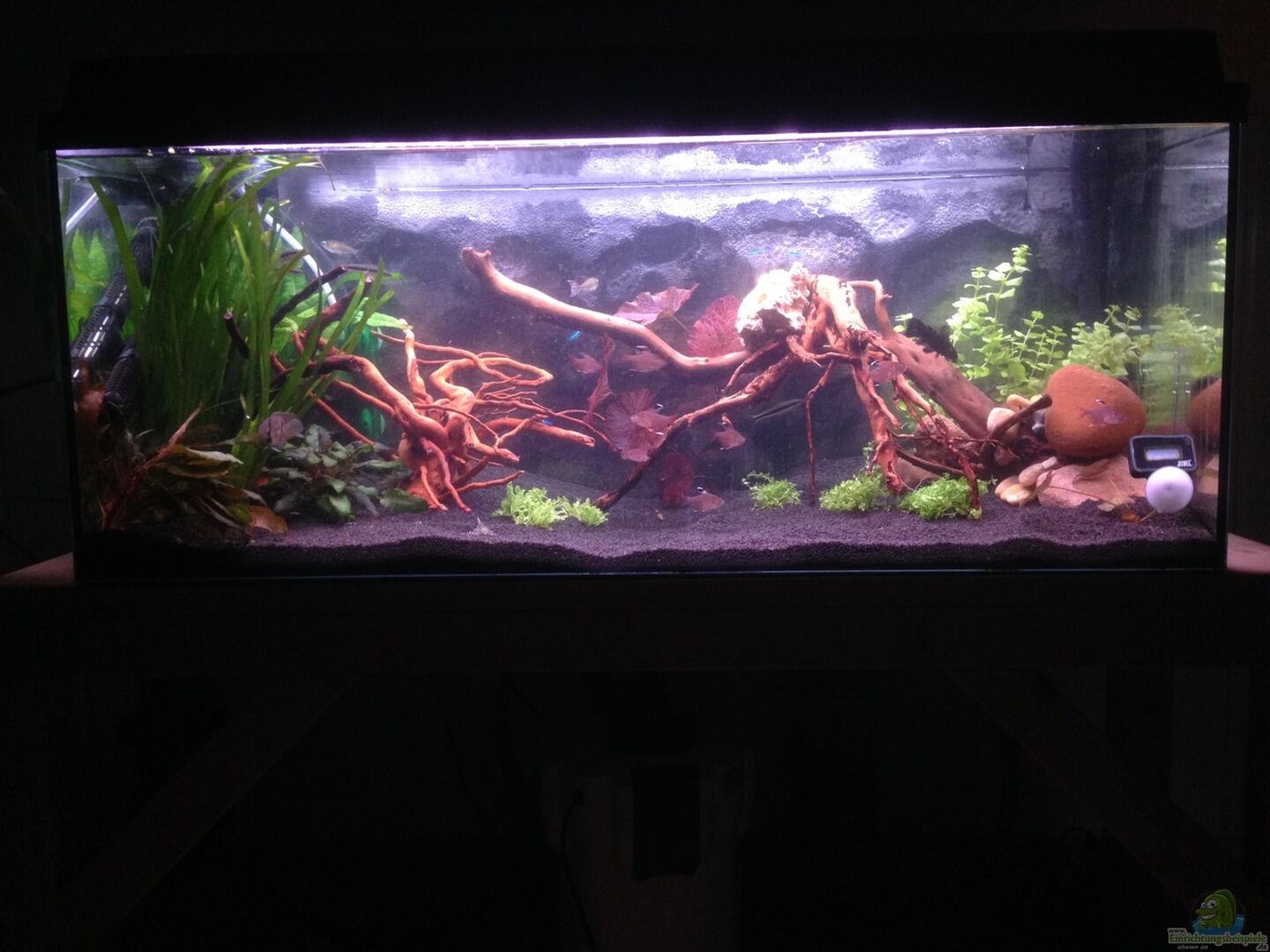Gefiltert wird über ein SunSun Aquarium Au??enfilter 1000l/h 3-Stufen.