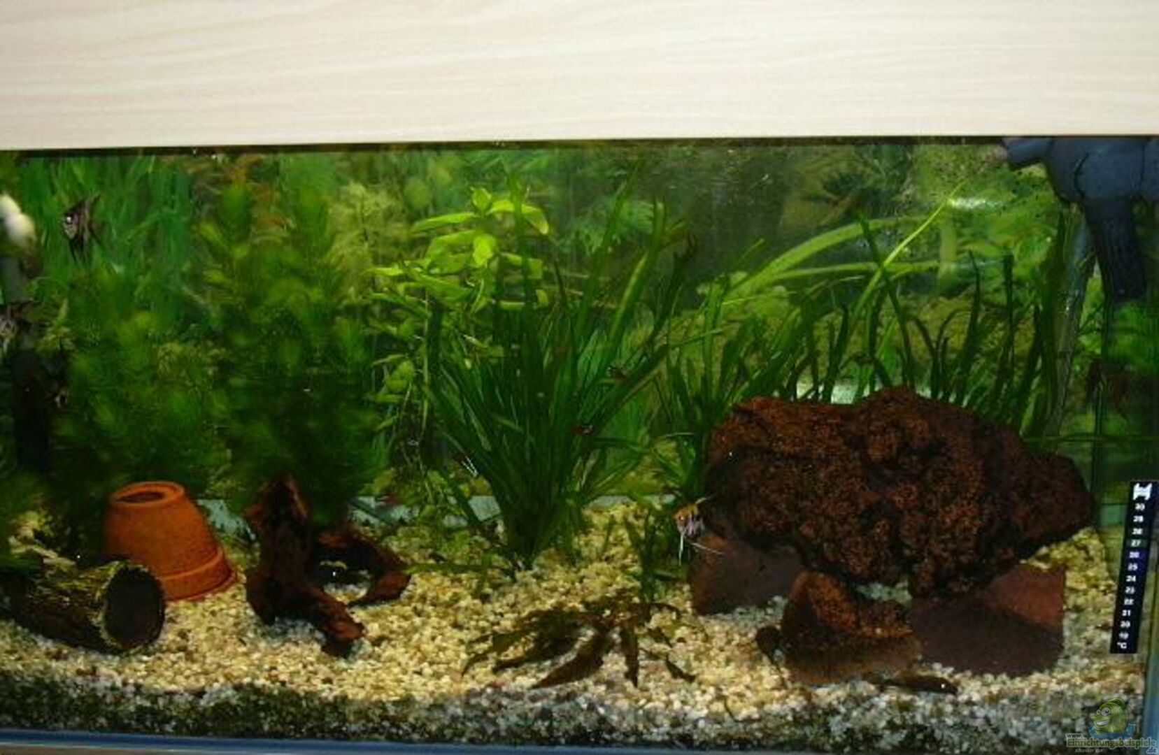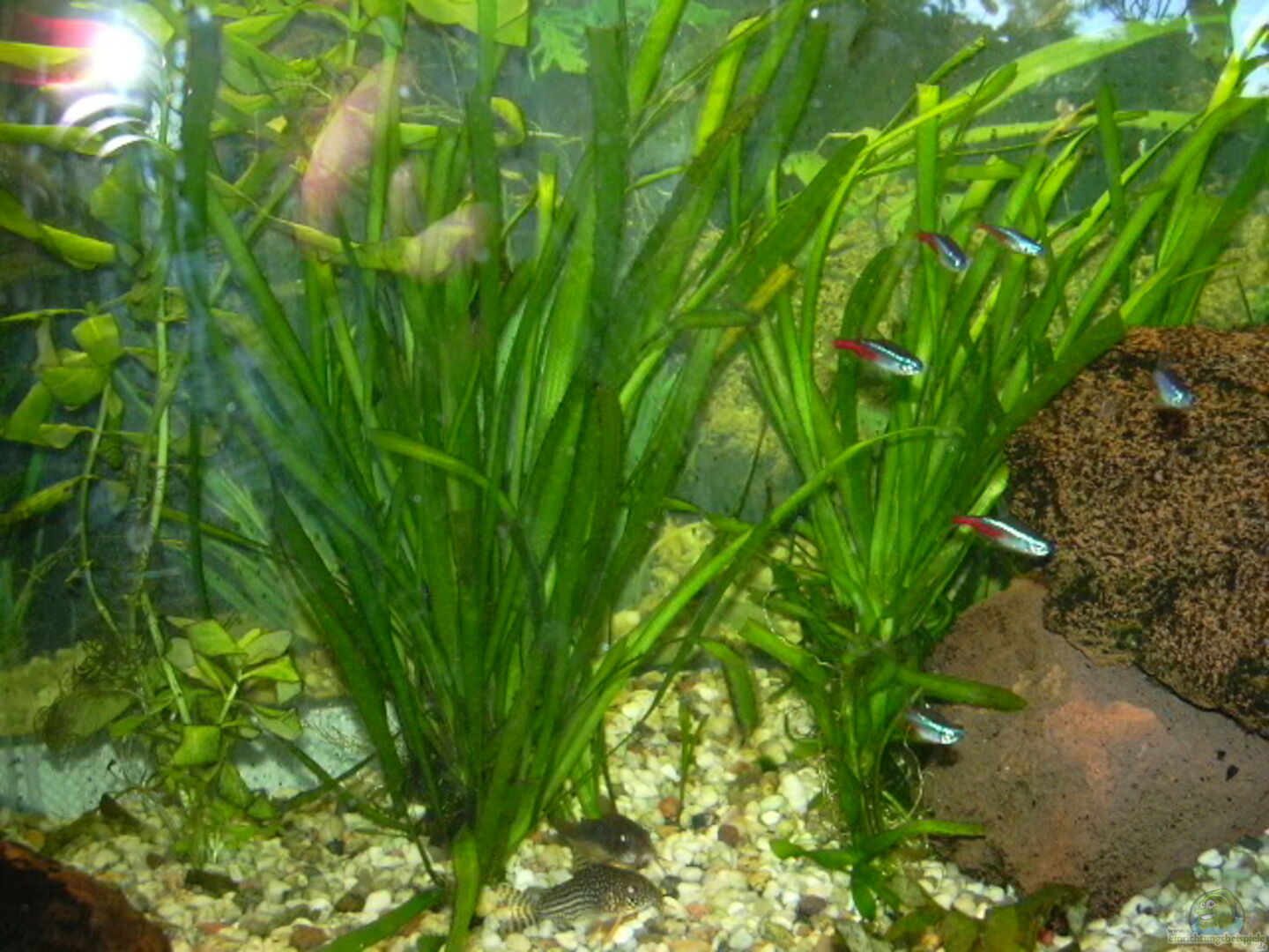 Hallo Marco, eine schöne gro?e Wurzel und eine Rückwand (kein Foto) wären nicht schlecht. Die Bepflanzung könnte noch dichter sein. Ab und zu Lebendfutter wäre auch gut. Die Strömung dürfte bei 1400l/h und der Beckengrö?e mehr als ausreichend sein. Aus dem Becken kann man sicher noch mehr machen. Gru? Stefan