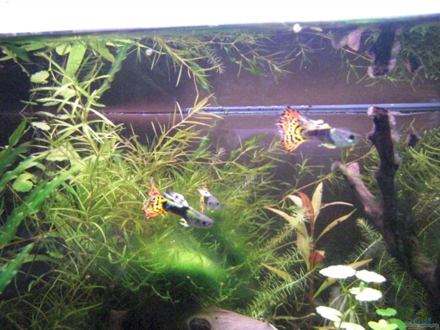 Kampffisch Mann musste wegen Agrisivität gegenüber dem Weibchen ausquartiert werden.Erst dannach kahmen die Guppys