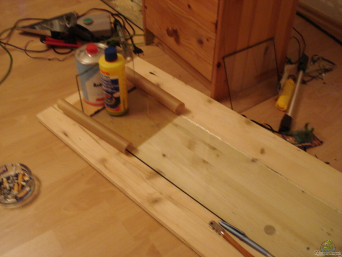 Das Aq ist Eigenbau das Glas dafür habe ich aus einen alten 200 liter Becken mit einem Glasschneider aus dem Baumarkt herrausgeschnitten.