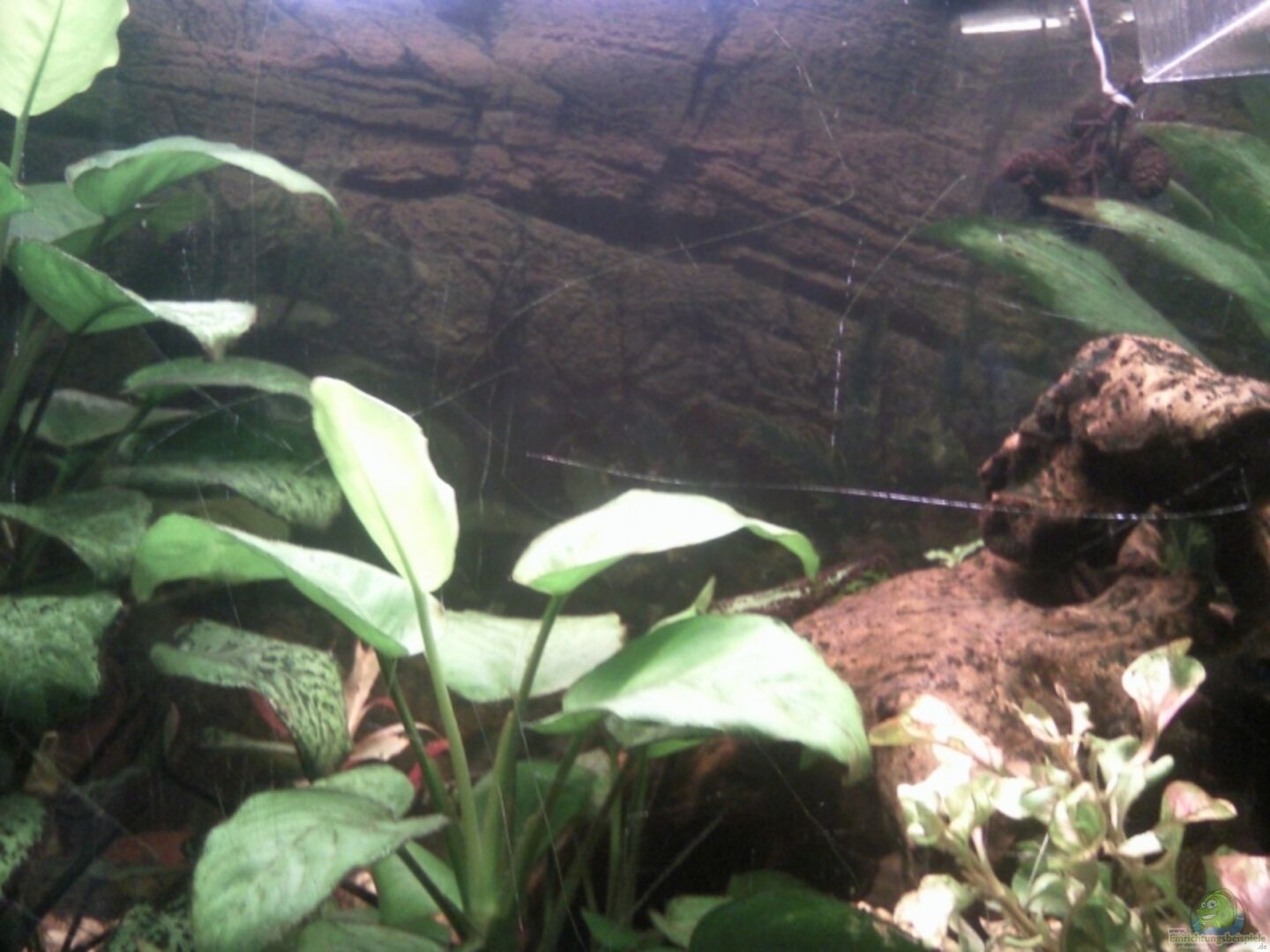 Habe gerade eine Folienrückwand im Felswand Design mit Pflanzen drauf angebracht.Diese soll übergangsweise das Becken etwas verschönern.Habe mir vorgenommen bald eine Rückwand selber zu Bauen, Anleitungen habe ich schon einige gesehen.