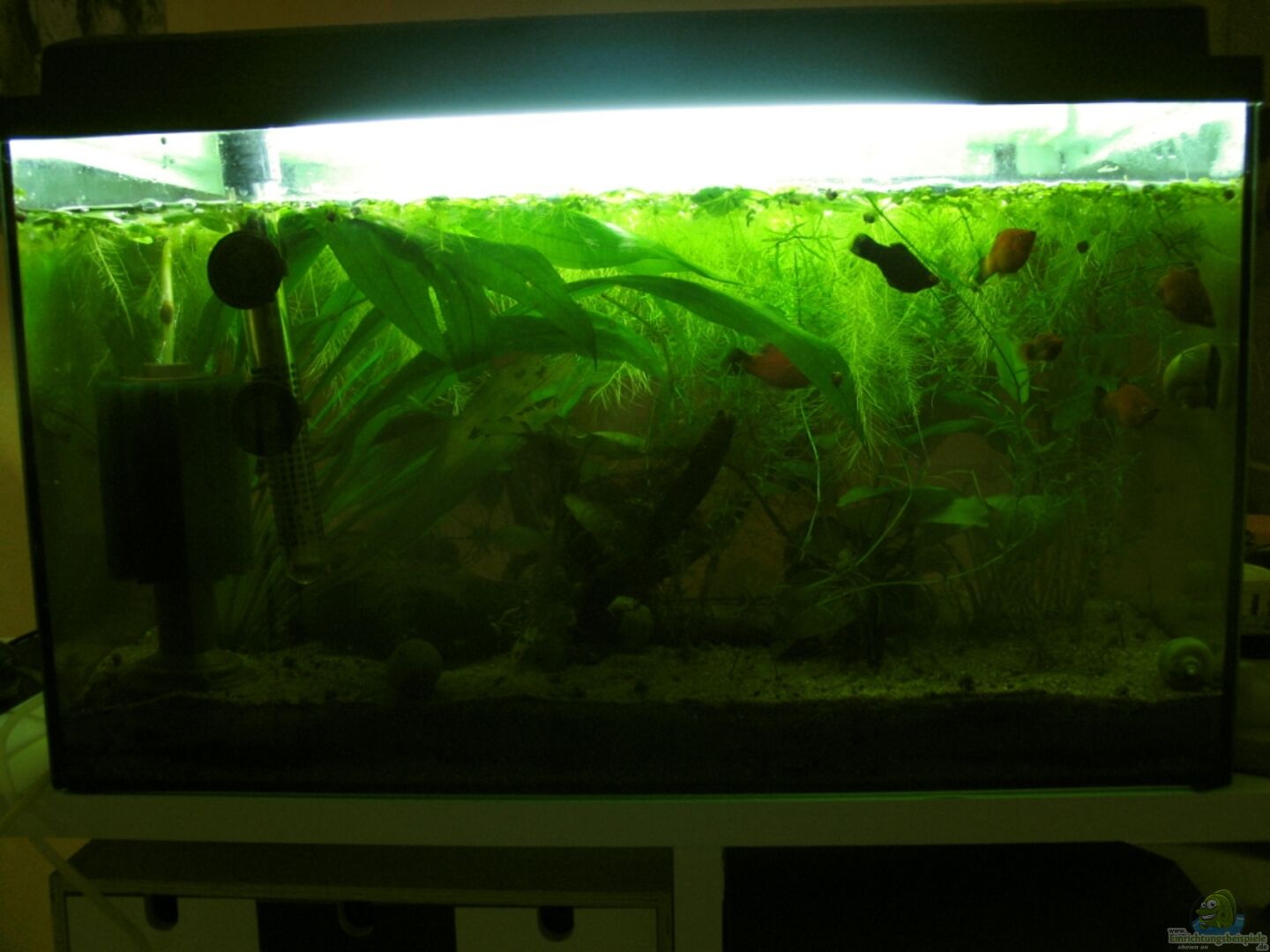 19. Juli 2010 Mittlerweile sind es 6 Platies mit einem jungen. Apfelschnecken sind es 5 mit einer jugen, die Turmdeckelschnecken haben sich explusionsartig vermehrt und durchwühlen fleissig den Boden.