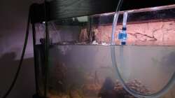 Während des Einlaufens wird dieser noch durch ein Eheim eco und einen Sera F 1200 aus anderen Becken unterstützt. Das Filter Material wurde zum Teil aus bestehenden Filtern übernommen.