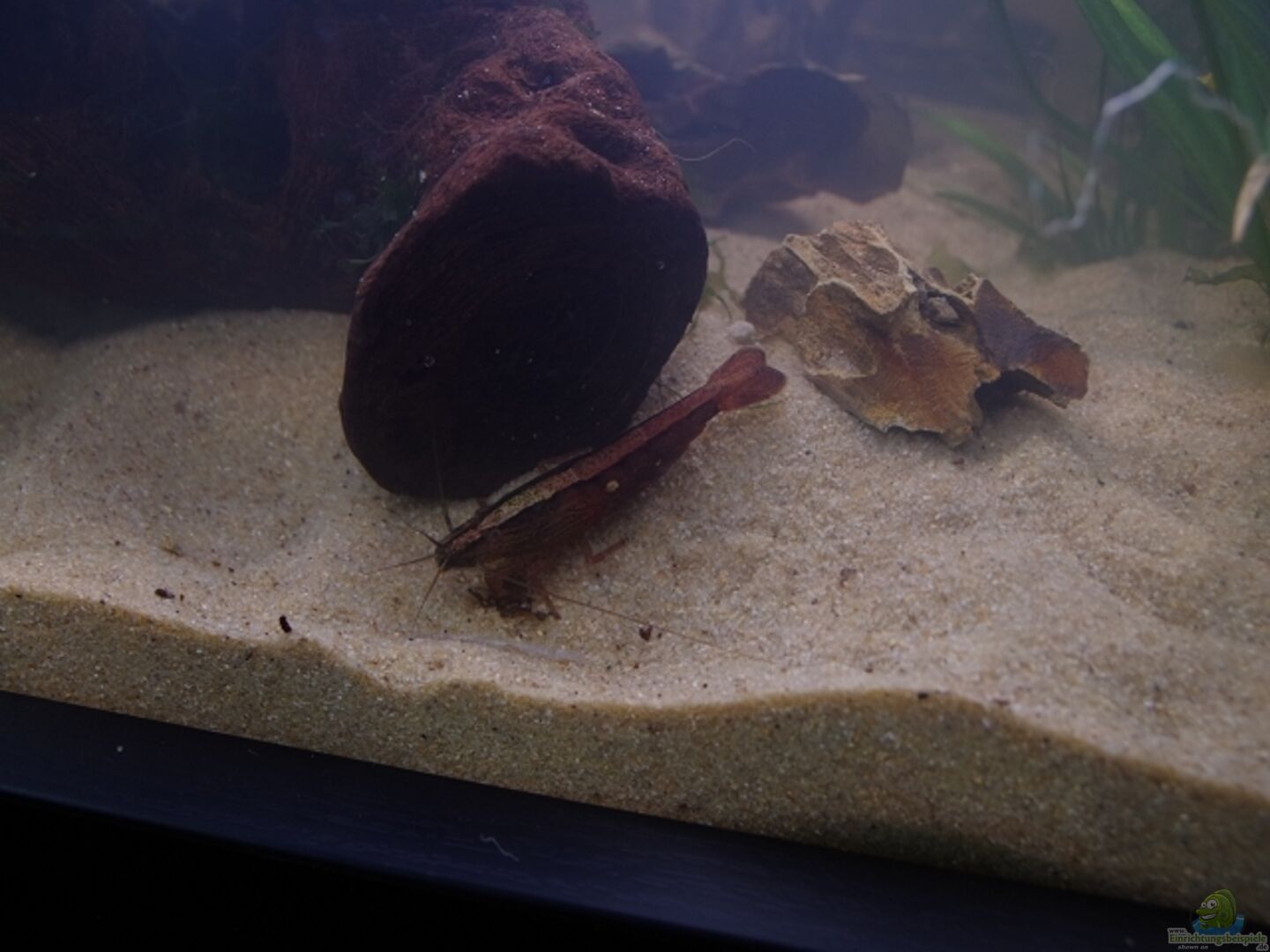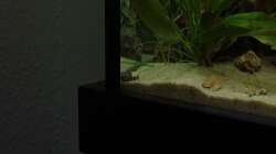 sollte eigentlich noch nicht in das Becken da noch keine Algen etc im Becken sind. Da sie sich aber dennoch eingeschmuggelt hat, muss ich sie erst einmal drin lassen da ich sie nicht so häufig fangen möchte um ihr nicht zu schaden