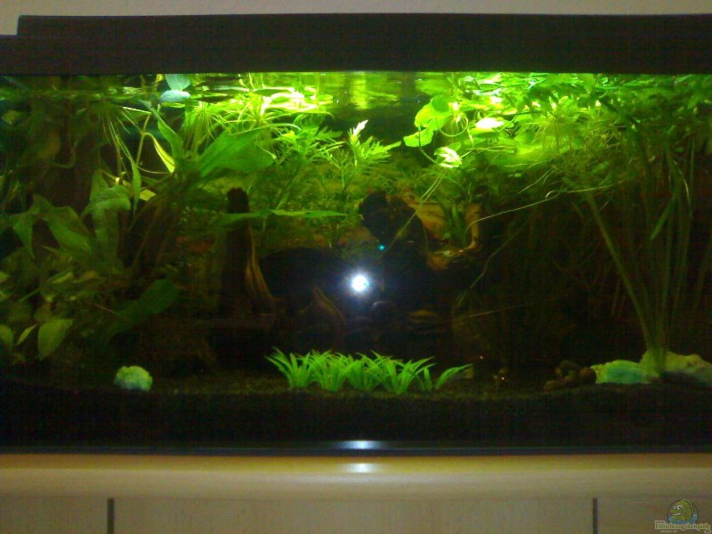 Ich würde an deiner Stelle die Plastikpflanzen rausnehmen (helfen dir nicht bei den Wasserwerten, veralgen und bleichen mit der Zeit aus, so dass sie unansehnlich werden) und durch ein paar echte Vordergrundpflanzen ersetzen.