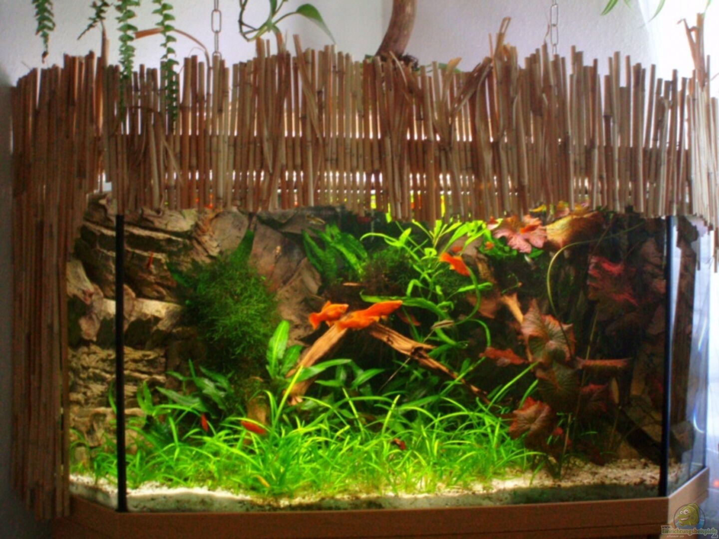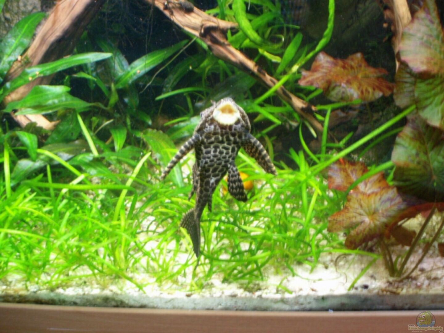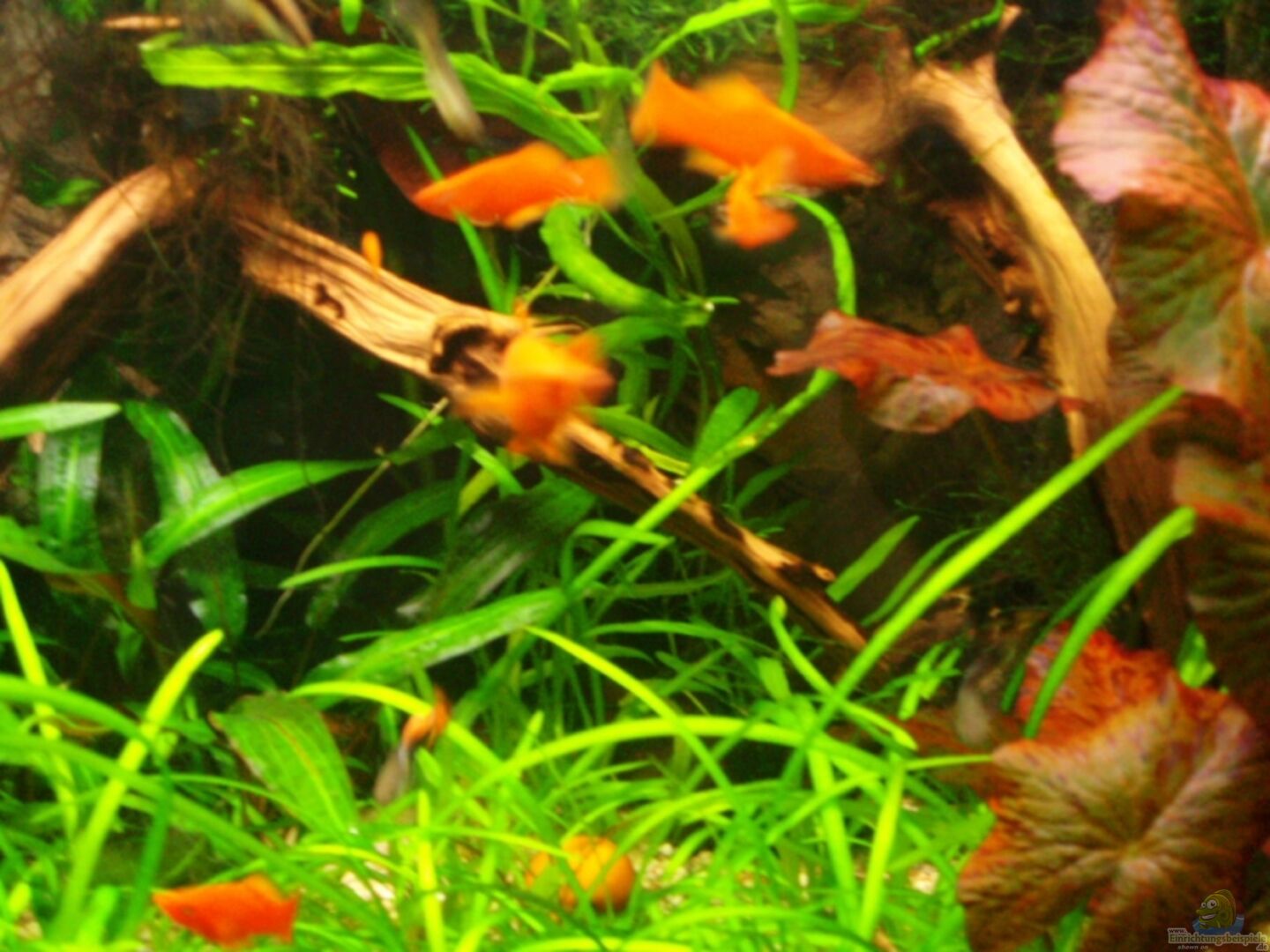 4 Siamesische Rüsselbarben, 3 Antennenwelse und deren Nachwuchs, 1 Wabenschilderwels der bald in das gro??e Diskusbecken umzieht, 8 Schwertträger und deren Nachwuchs der regelmä??ig abgeben wird. 10 Guppys