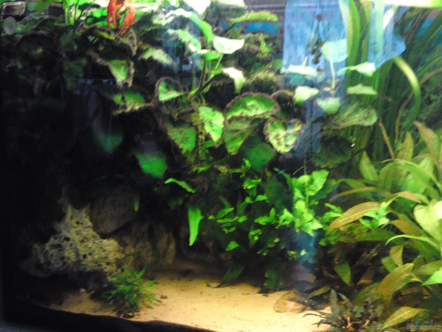 In der linken ecke ist eine gro??e höhle wo sich die Krebse und Welse Verstecken desweiteren noch eine Welshöle auf der rechten seite und in der mitte etwas für die Krebse