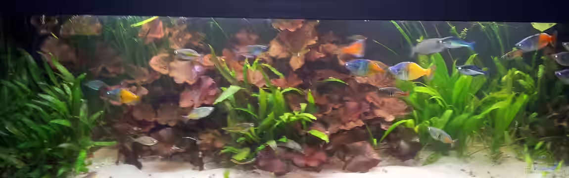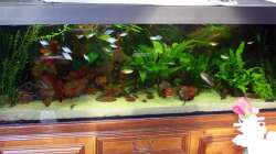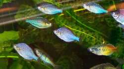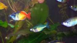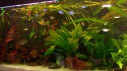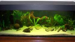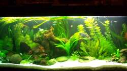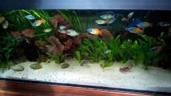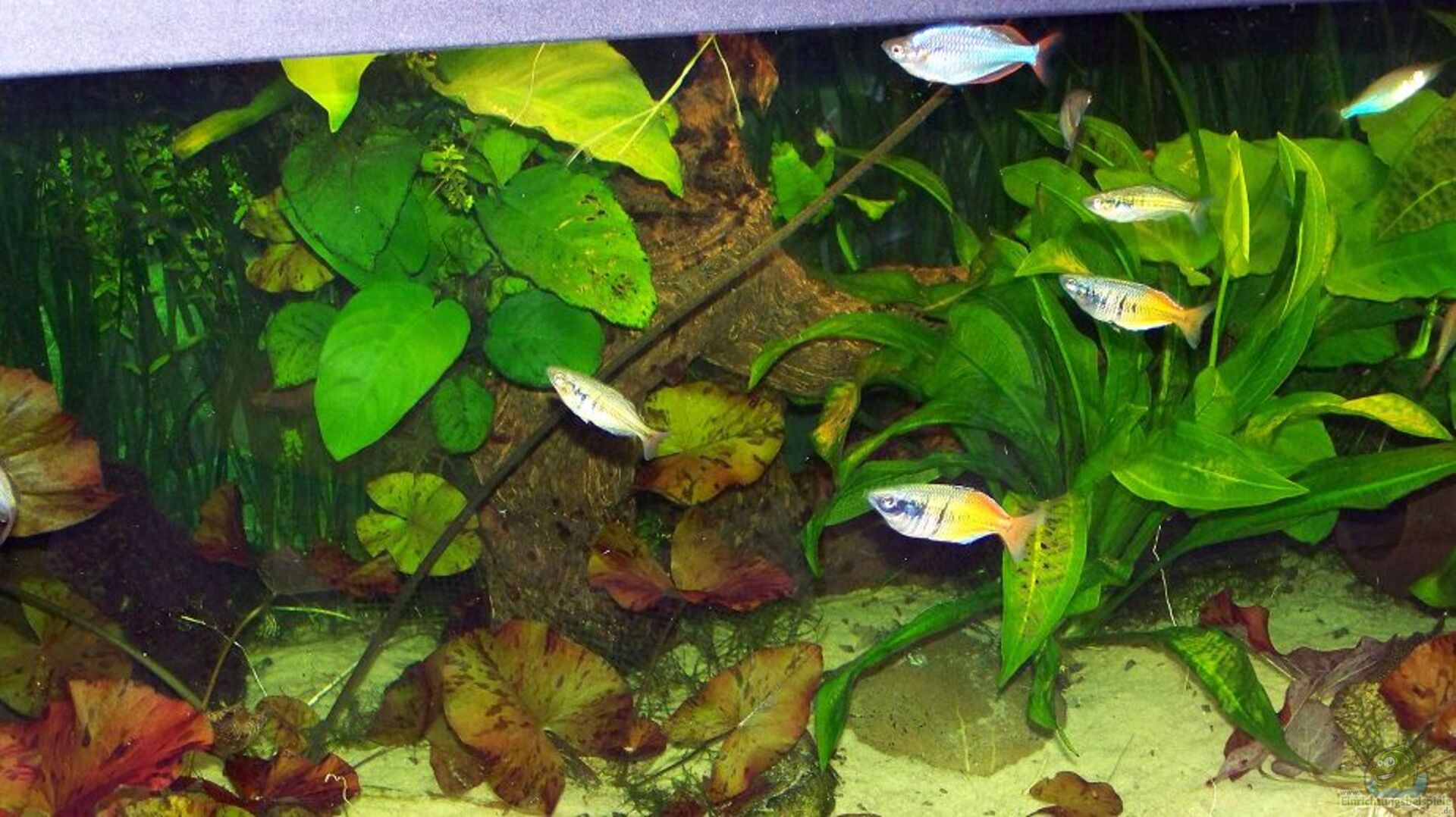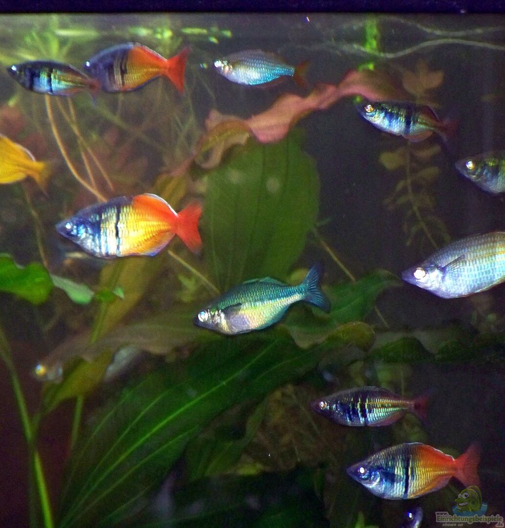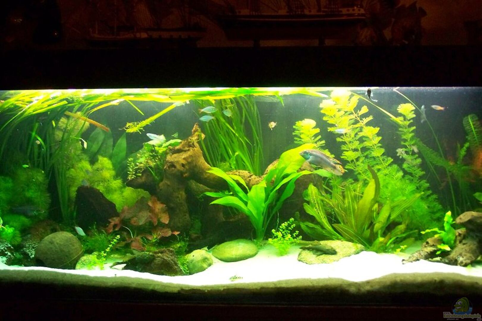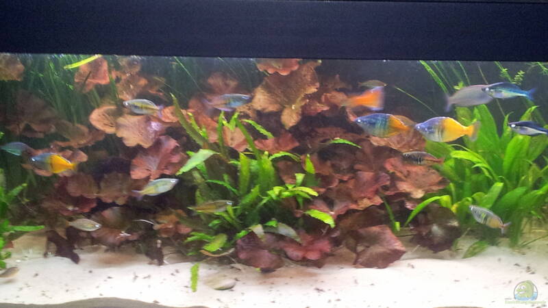 das Becken spricht mich optisch sehr an. hast auch schön viel Schwimmraum für deine Regebögen gelassen. Der Besatz ist aber auch an der obersten Grenze. So viele, vorallem auch gro? werdende, Regenbogenfische. Dazu noch die 5 Antennenwelse, das ist schon ein wenig viel. Ein pärchen der Antennenwelse würde reichen. Die Barsche könnten sich zudem durch die hektischen Regenbogenfische gestört fühlen. technik ist super. Beleuchtungsdauer fehlt. Futter ist vorbildlich.