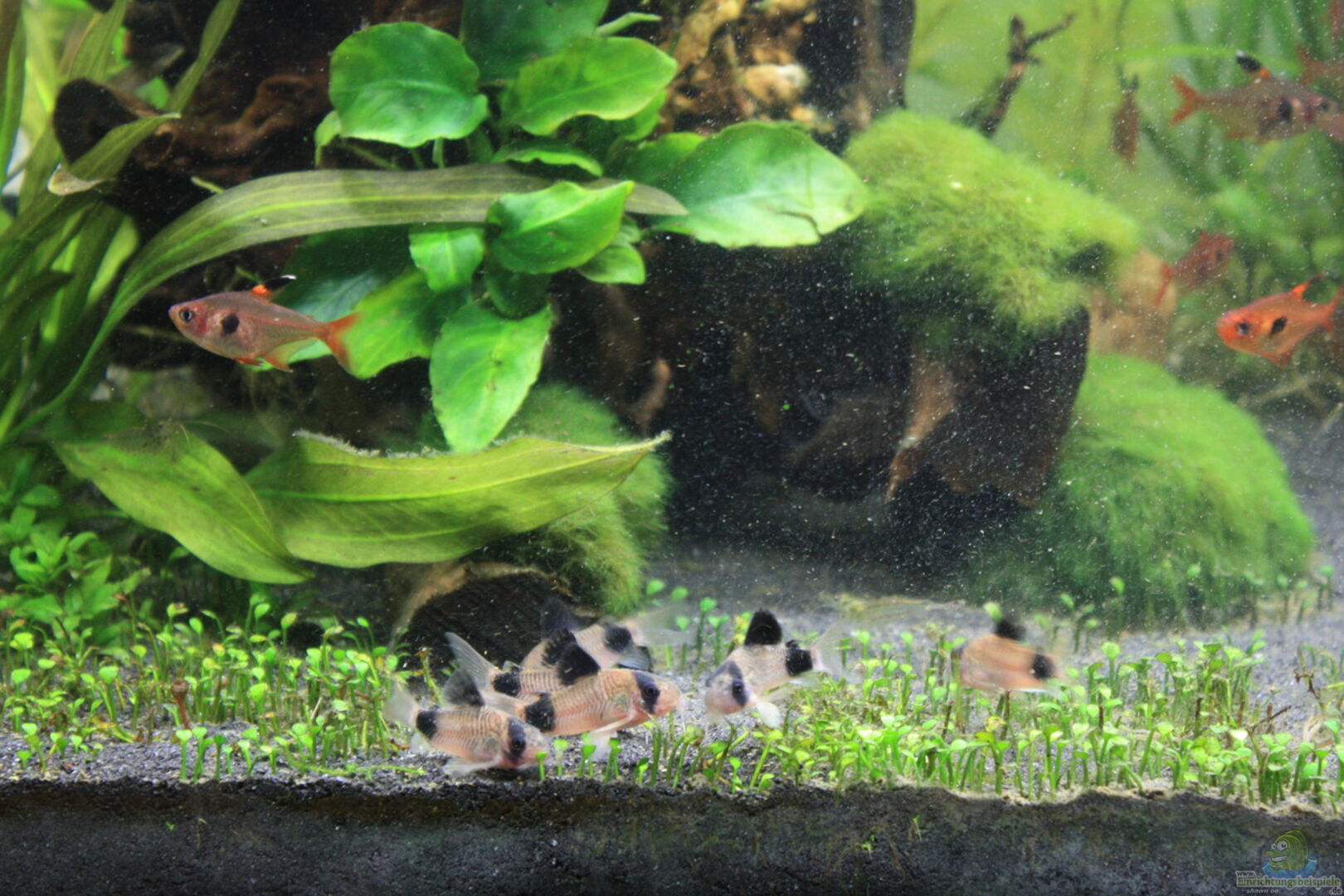 Die Pandas sind eingezogen und machen viel Freude. Die Algen sind nun dank Garnelen, Schwimmpflanzen und Geduld nahezu verschwunden.