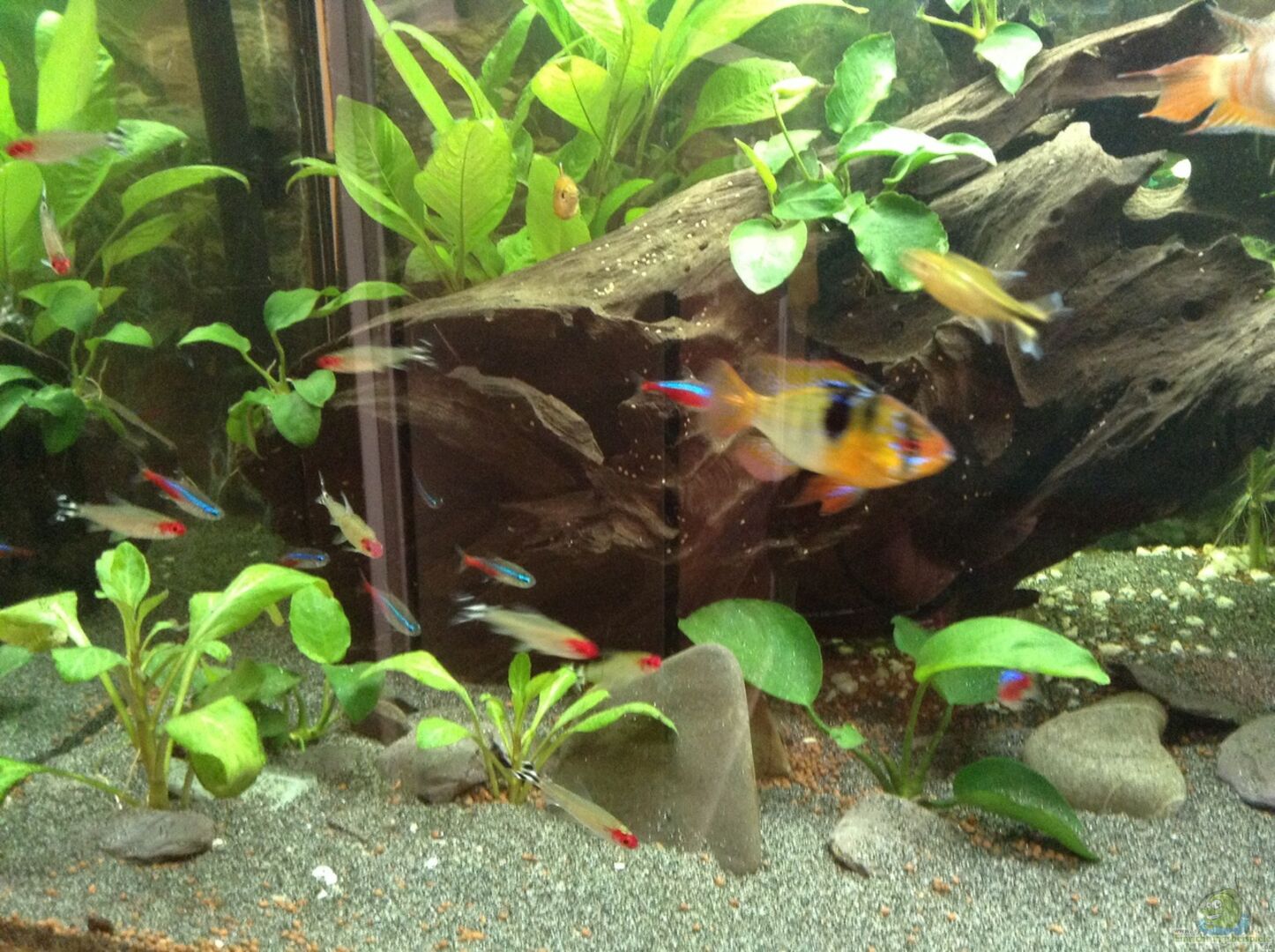 willkommen hier bei uns auf EB. Dein Aquarium schaut optisch schon recht gut aus. Beim Besatz würde ich aber optimieren und die Zahl der Schwärme auf max. 2 begrenzen und die Anzahl der Tiere je Schwarm erhöhen. Auch wenn es so jetzt auch funktioniert, kann das eine Anregung für die Zukunft sein.