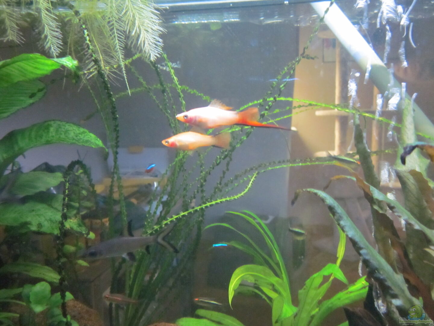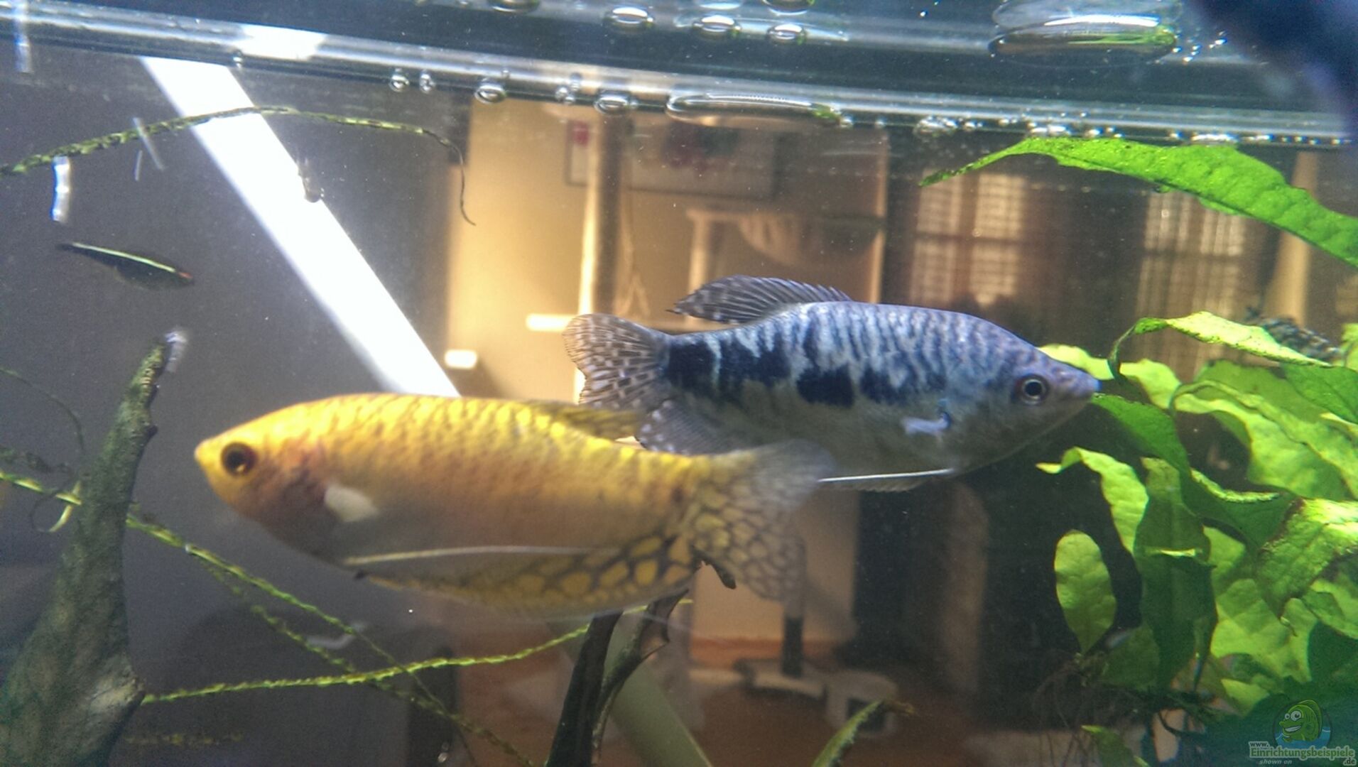 ... alle(hoffendlich) Mollybabys, ein Goldenes Fadenfischpärchen und zwei Algenfresser sind in ein anderes Becken umgezogen (100L Panoramabecken)... jetzt ist deutlich mehr Ruhe im Becken.