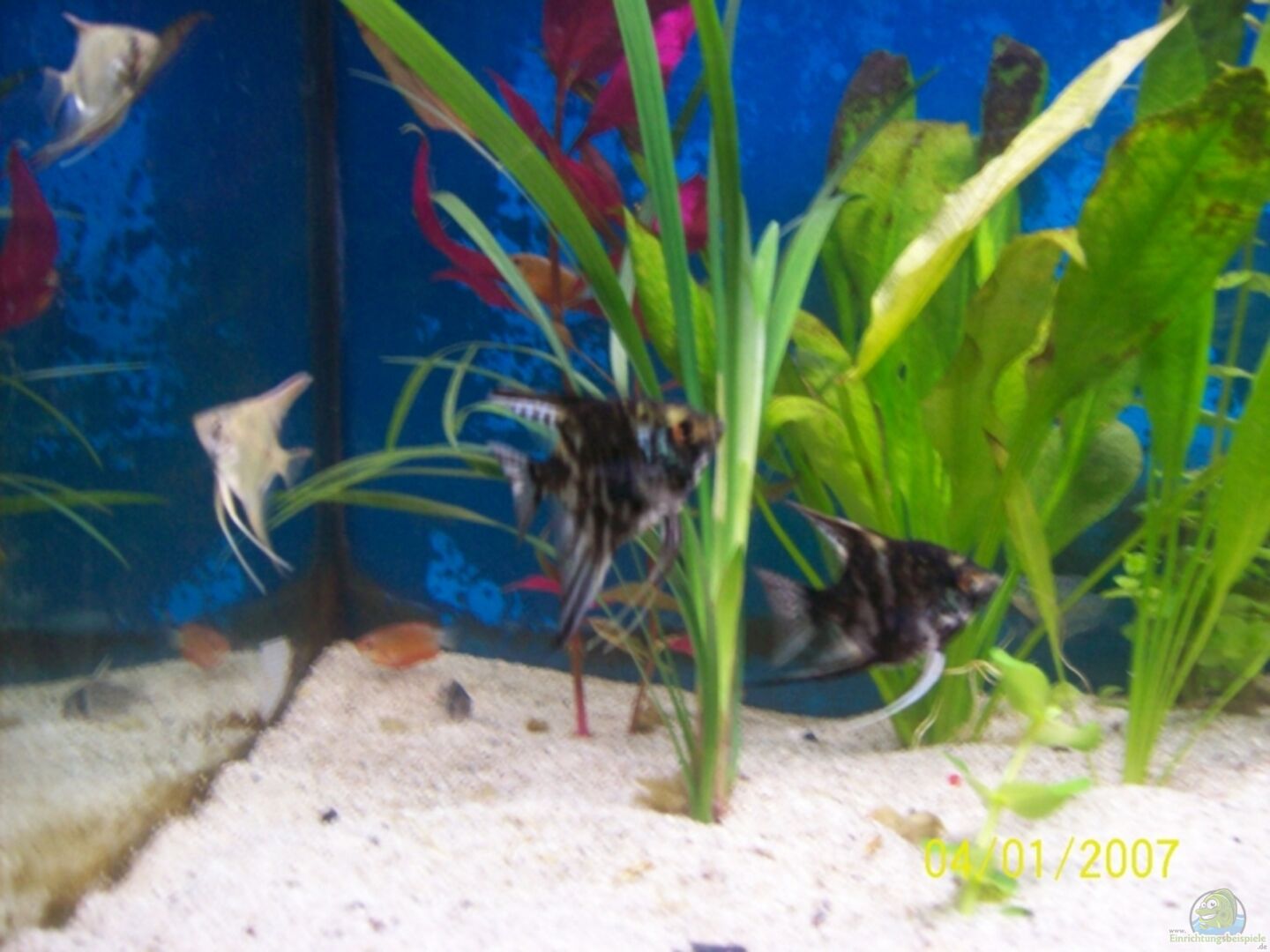 Die Einrichtung ist ja immer Geschmackssache. Für 4 Skalare und Labyrinther ist das Becken viel zu klein. Auch für ein Paar Skalare, die Fadenfische und die Kampffische ist es zu klein, da alle Tiere revierbildend sind. Entscheide dich für eine Art (entweder Kampffische oder Fadenfische oder Skalare).