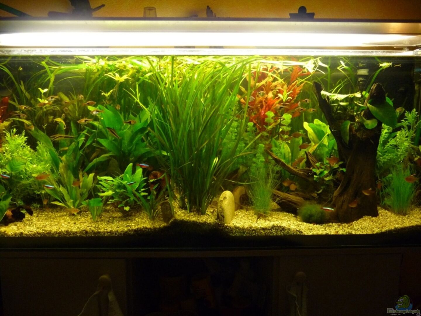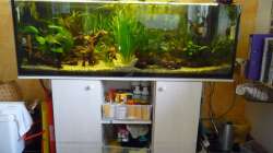 Tonkuppeln habe ich entfernt, Planzen in gruppen zusammengesetzt, cryptocorunen links, echinodoren rechts im Becken, Rückenschwimmende Kongowelse verschenkt.
