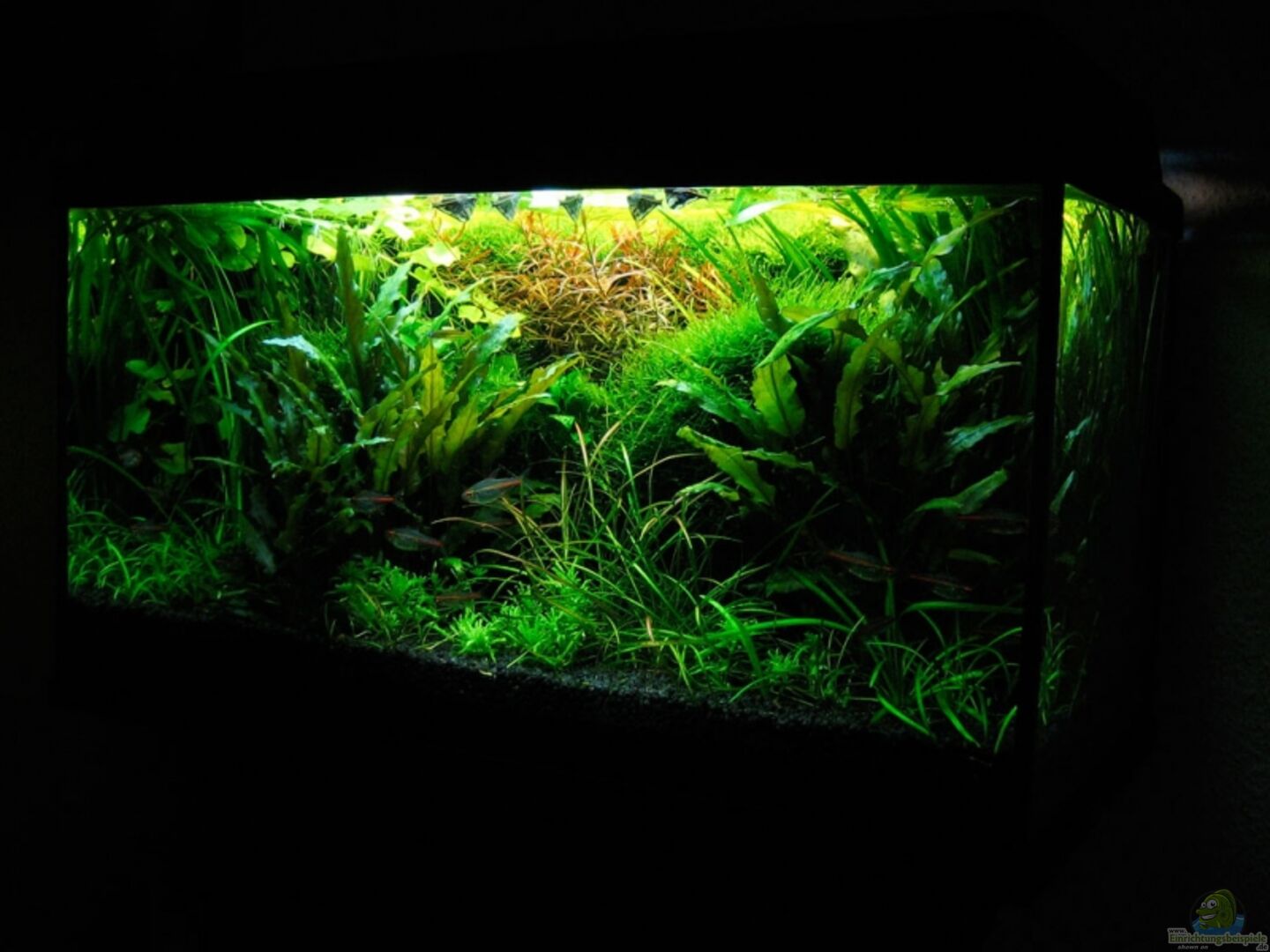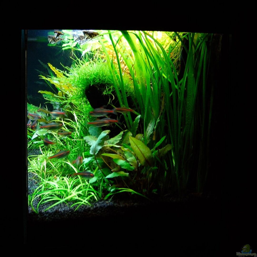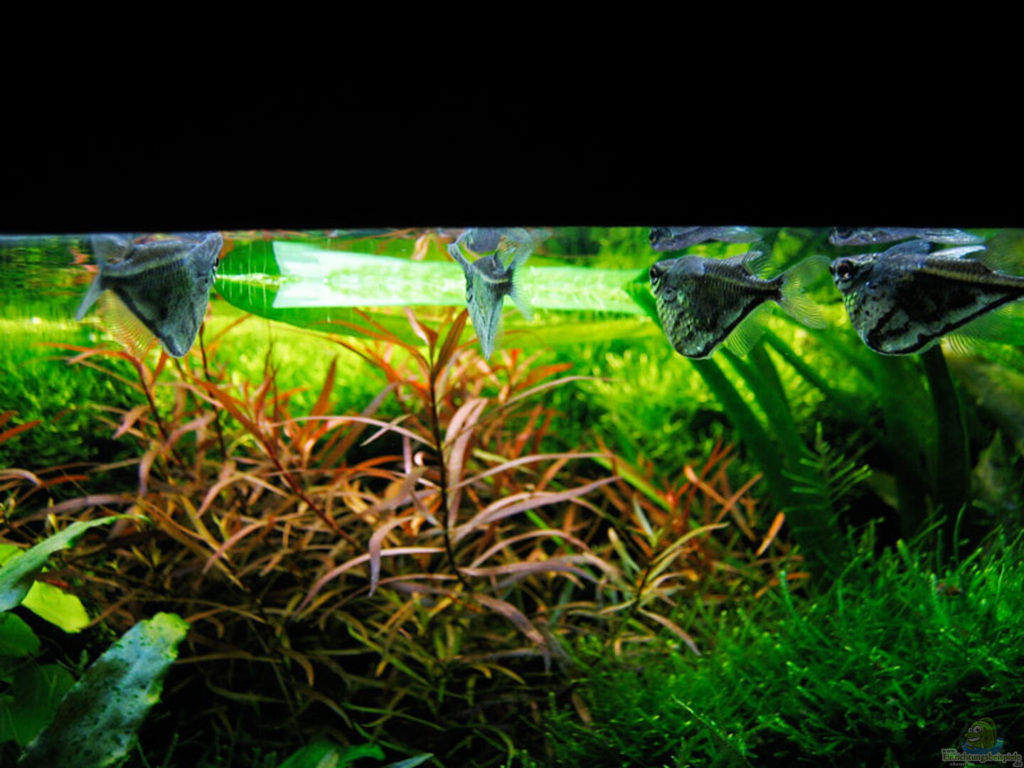 Das Aquarium läuft seit ca. 1995 und ist ein billiges NoName Produkt, von dem mittlerweile nur noch das Glasbecken selbst und die Abdeckung (ohne Leuchtbalken) original sind.