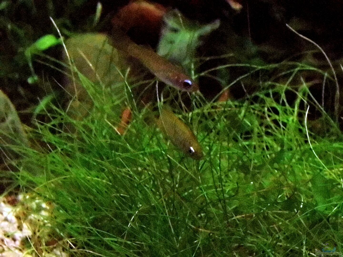 Gehört zu den Zahnkärpflingen das Verbreitungsgebiet des Aplocheilichthys normani ist West- und Zentralafrika. Der Leuchtaugenfisch erreicht eine Grö??e von ca 4 cm , ist sehr friedliebend und sehr gut mit kleinbleibenden Bärblingen , Barben, Welsen , Kärpflingen und auch Garnelen vergesellschaftbar.