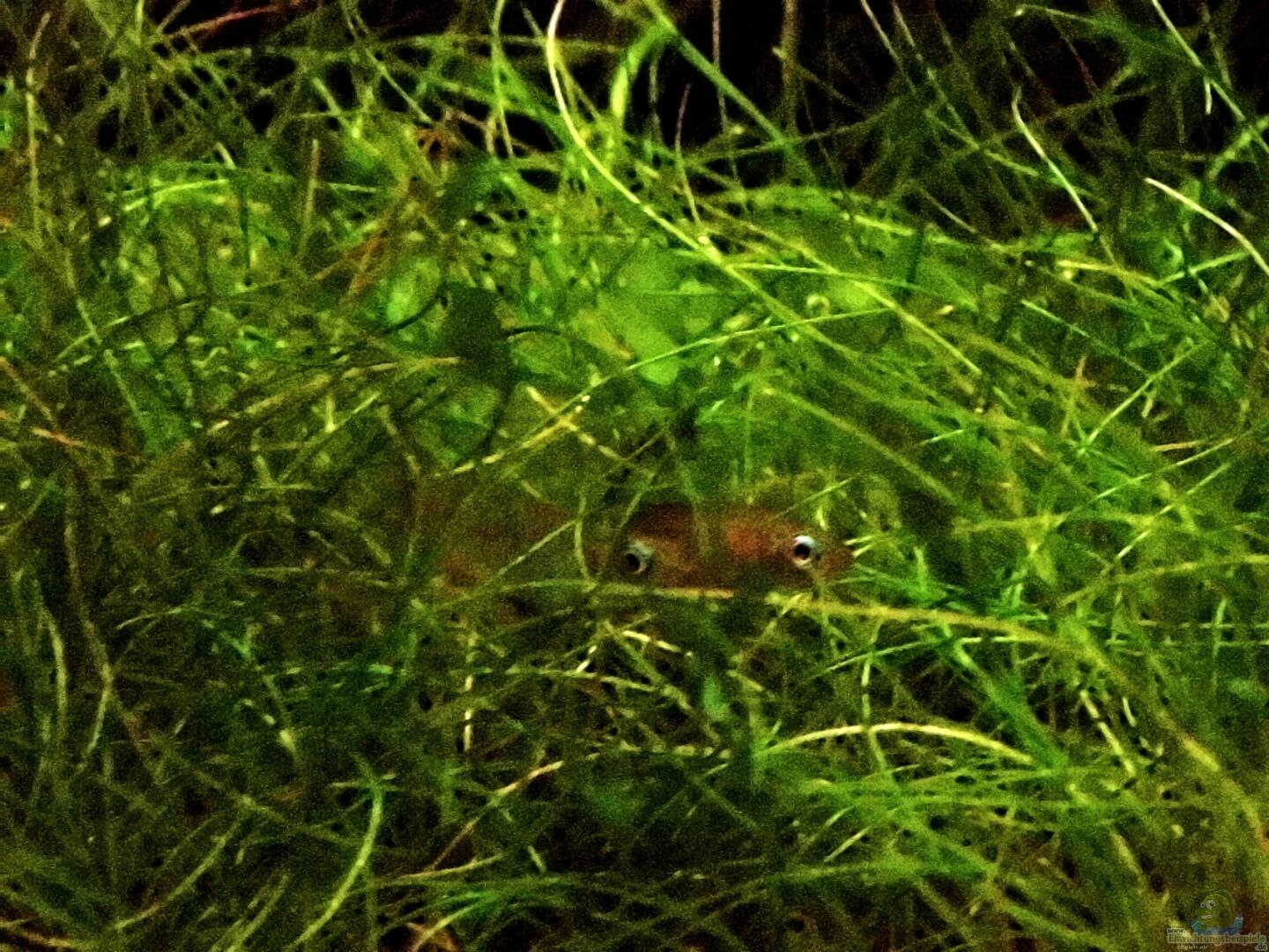Erste Jungfische des Leuchtauges entdeckt , trotz ihrer noch winzigen Grö??e , ist das Stahlbaue Auge schon sehr gut erkennbar.