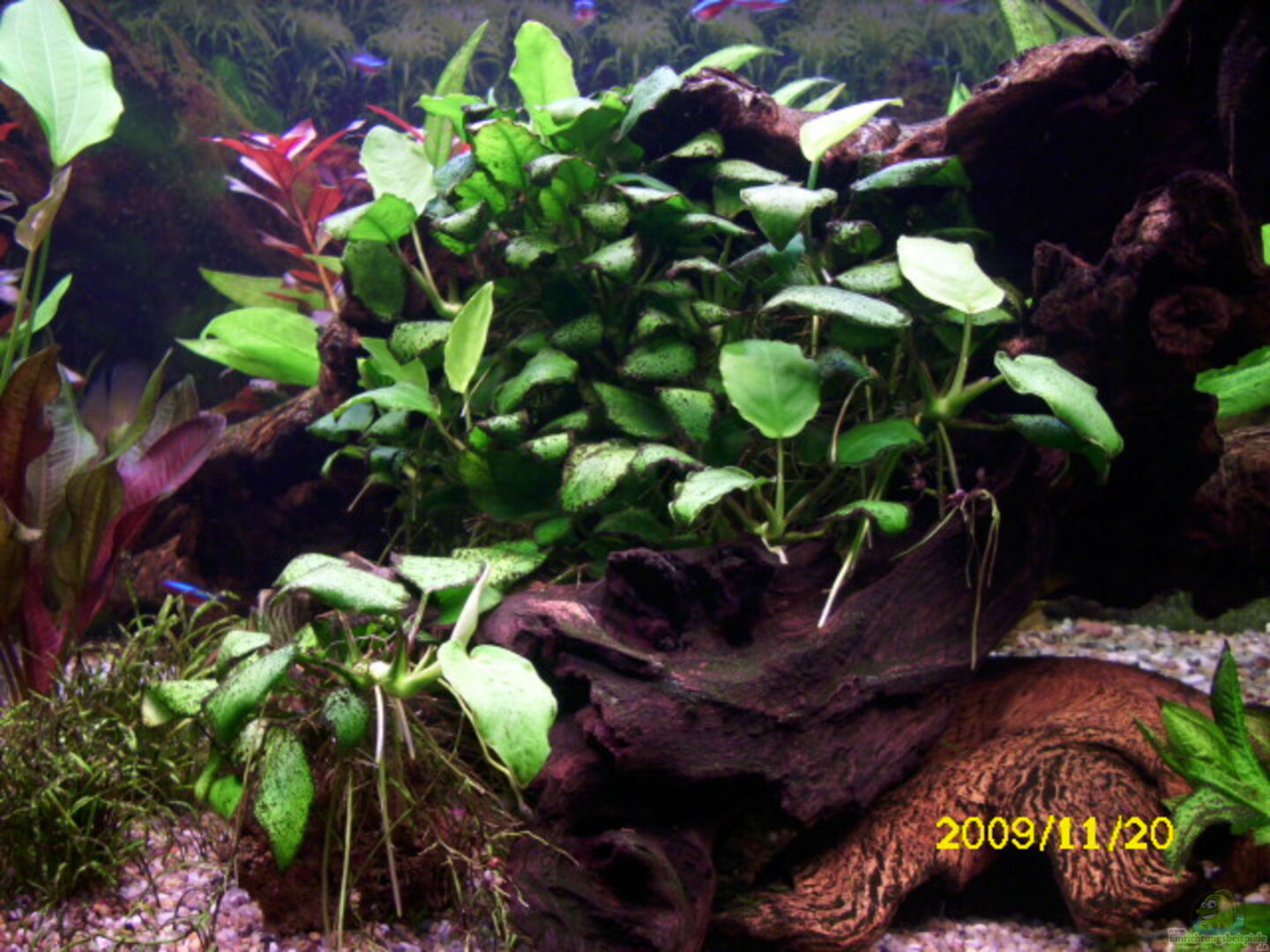 Dein Becken hat eine sehr schöne Optik, schon allein die Anordnung und Auswahl der Pflanzen und die Wurzel ist TOP, es wirkt alles zusammen sehr harmonisch.