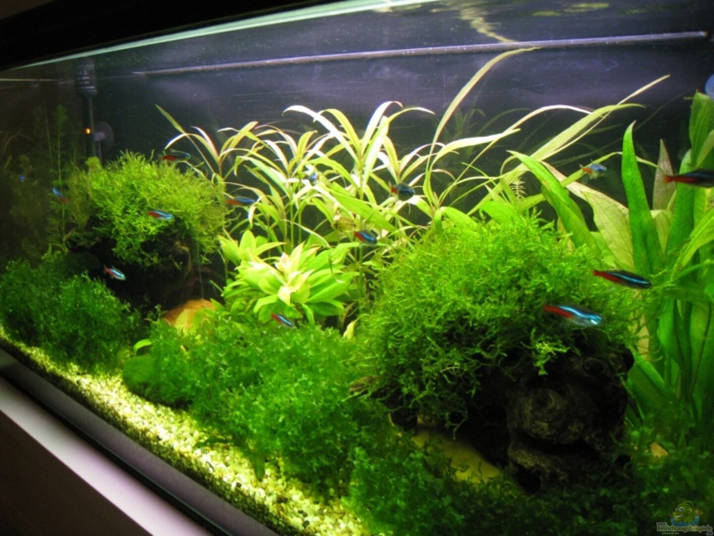 Nächste Woche bekomme ich noch kubanisches Perlkraut (Hemianthus callitrichoides), womit ich einen Gro?teil des Bodens bedecken will. Ich hoffe mit einem Haarnetz das Kraut am Boden zu halten.