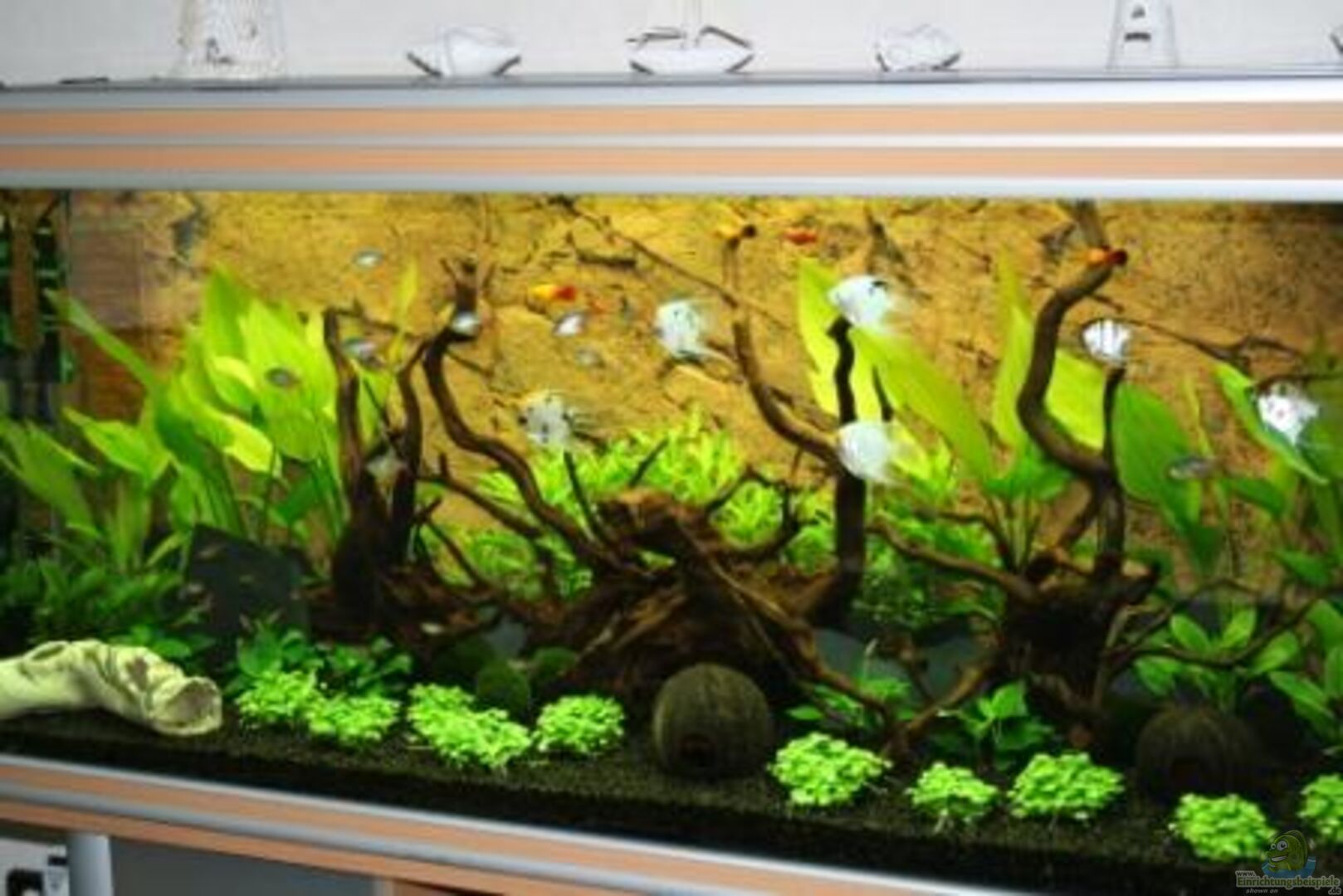 07.03.2009: Glühlichtsalmer, Skalare und Schmerlen aus dem alten Becken umgesetzt. In den nächsten Wochen folgen noch Streifenschmerlen und Prachtschmerlen, damit diese in Gruppen gehalten werden. Ansonsten ist der Besatz komplett.