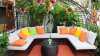5 Pflanzen in Terrakotto-Tontöpfe mit hellem Aquariumsand gesetzt.