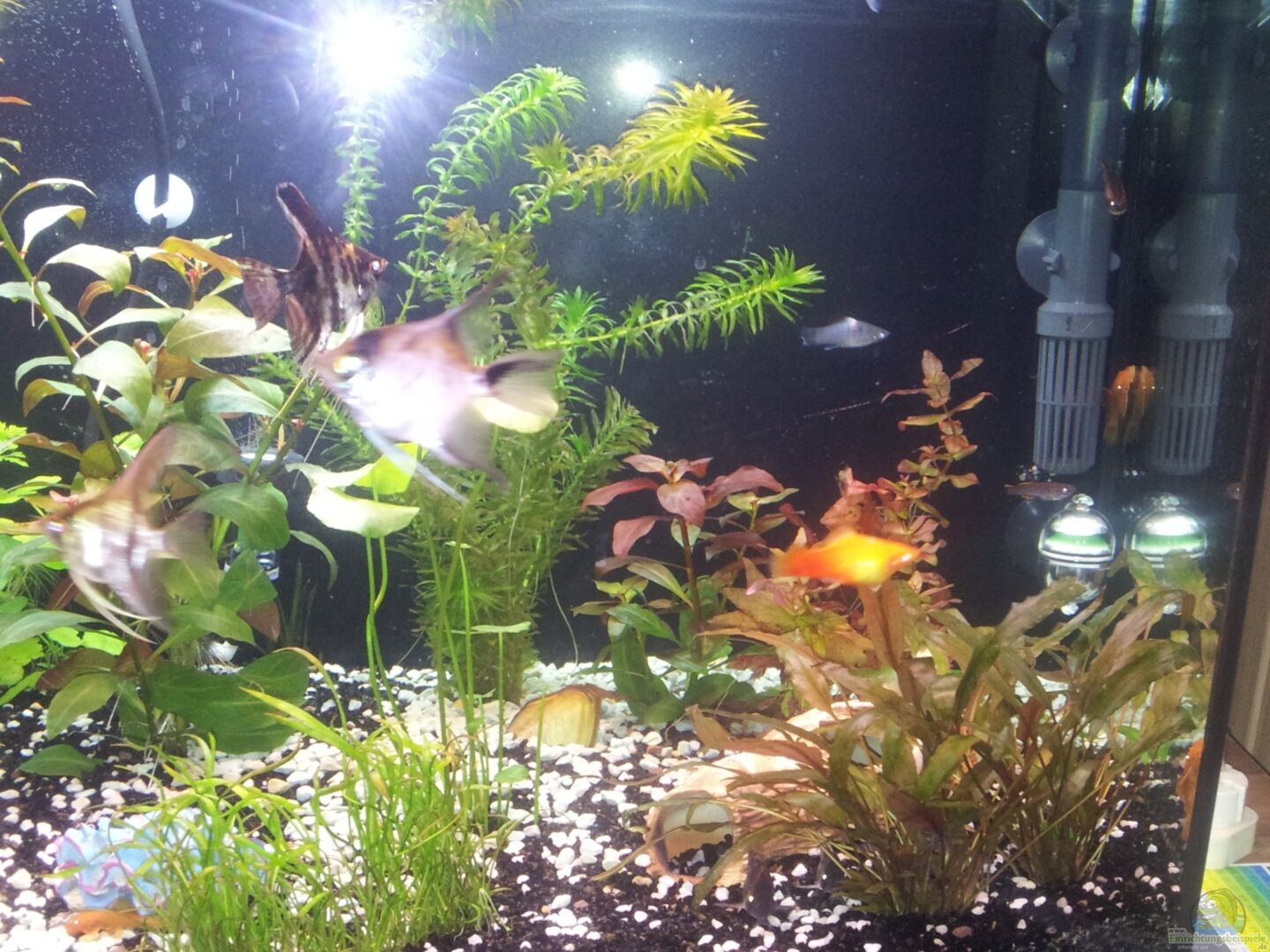 Da ich hier schon einige Meldungen bekommen habe, wegen dem Besatz der Fische möchte ich hinzusagen, das es zur Zeit ein Notbesatz ist!!!Es folgt demnächst ein 840l Becken wo die Fische dann umgesetzt werden und ich wieder ein klassisches Gesellschaftsbecken daraus mache und einige Fische aufstocke wie z.B. die Panzerwelse und die Salmler.