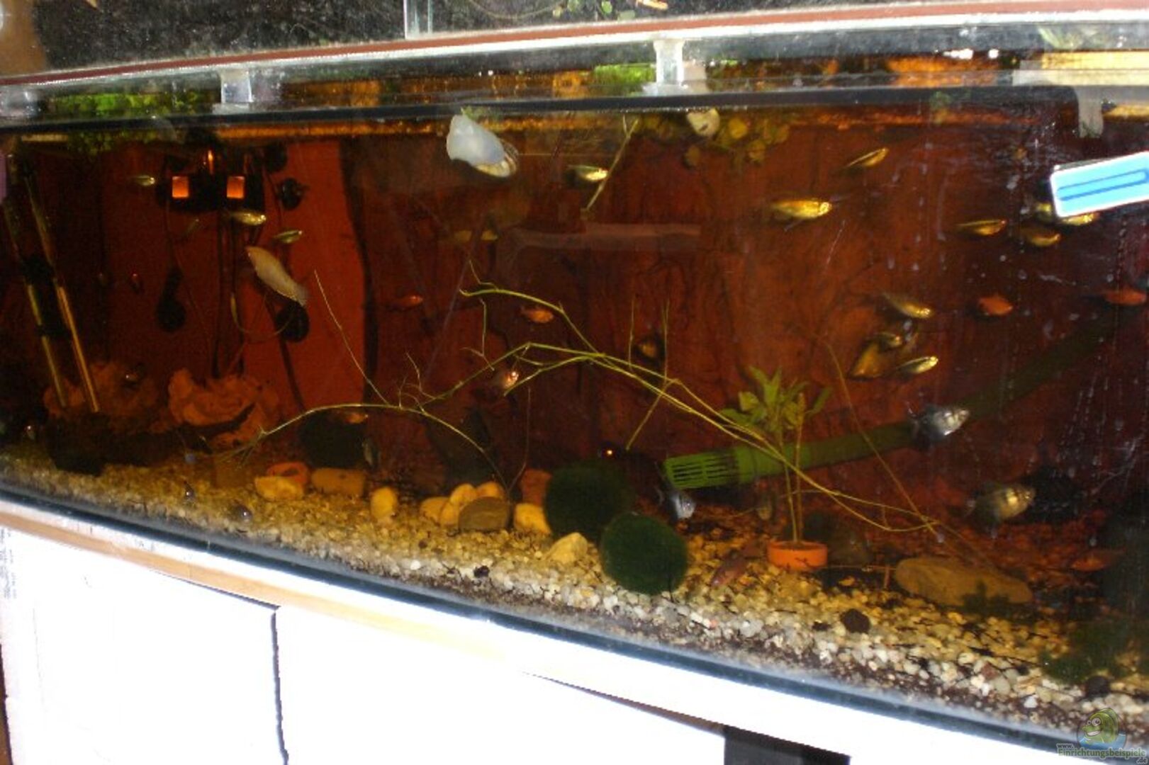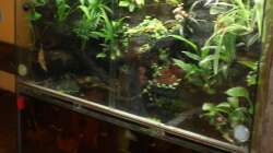 Wegen der Dunkelheit im Wasserteil und der diversen Schnecken sind Pflanzen nicht lang unter Wasser. Diverse Mooskugeln.