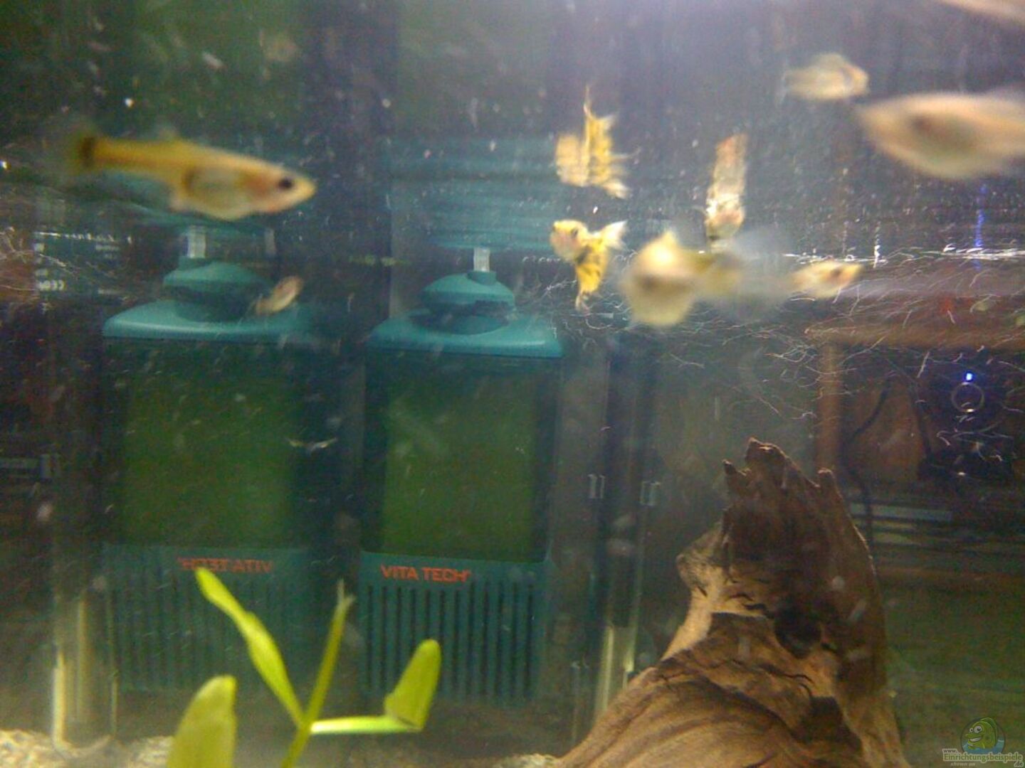 ich muss sagen dein becken ist schön aber du hättest 2, 3 pflanzen mehr rein machen können und deine guppys pass blo? auf 3 monate und deine fischanzahl verdoppelt sich ich wei? das selber aus eigener erfahrung.