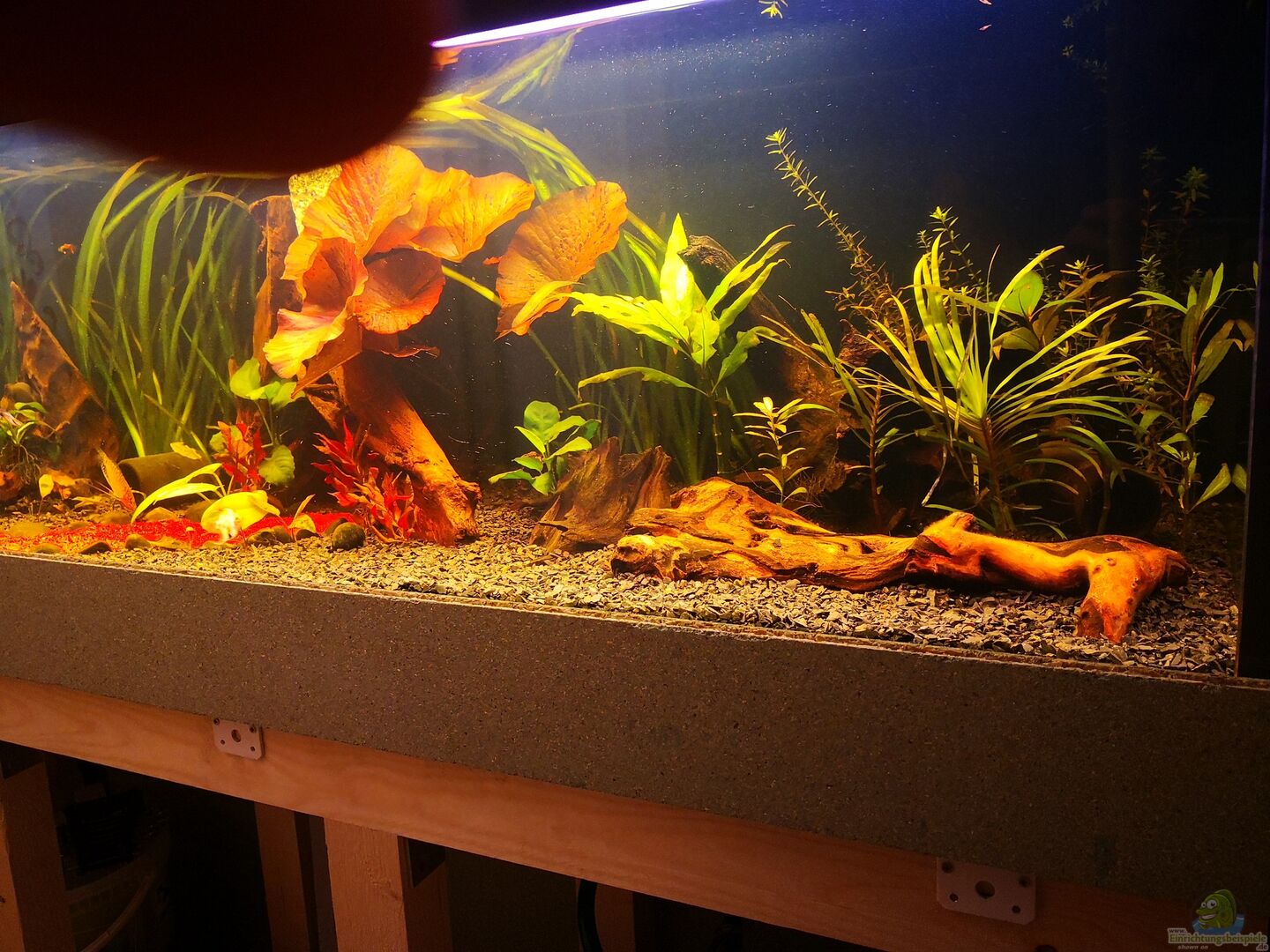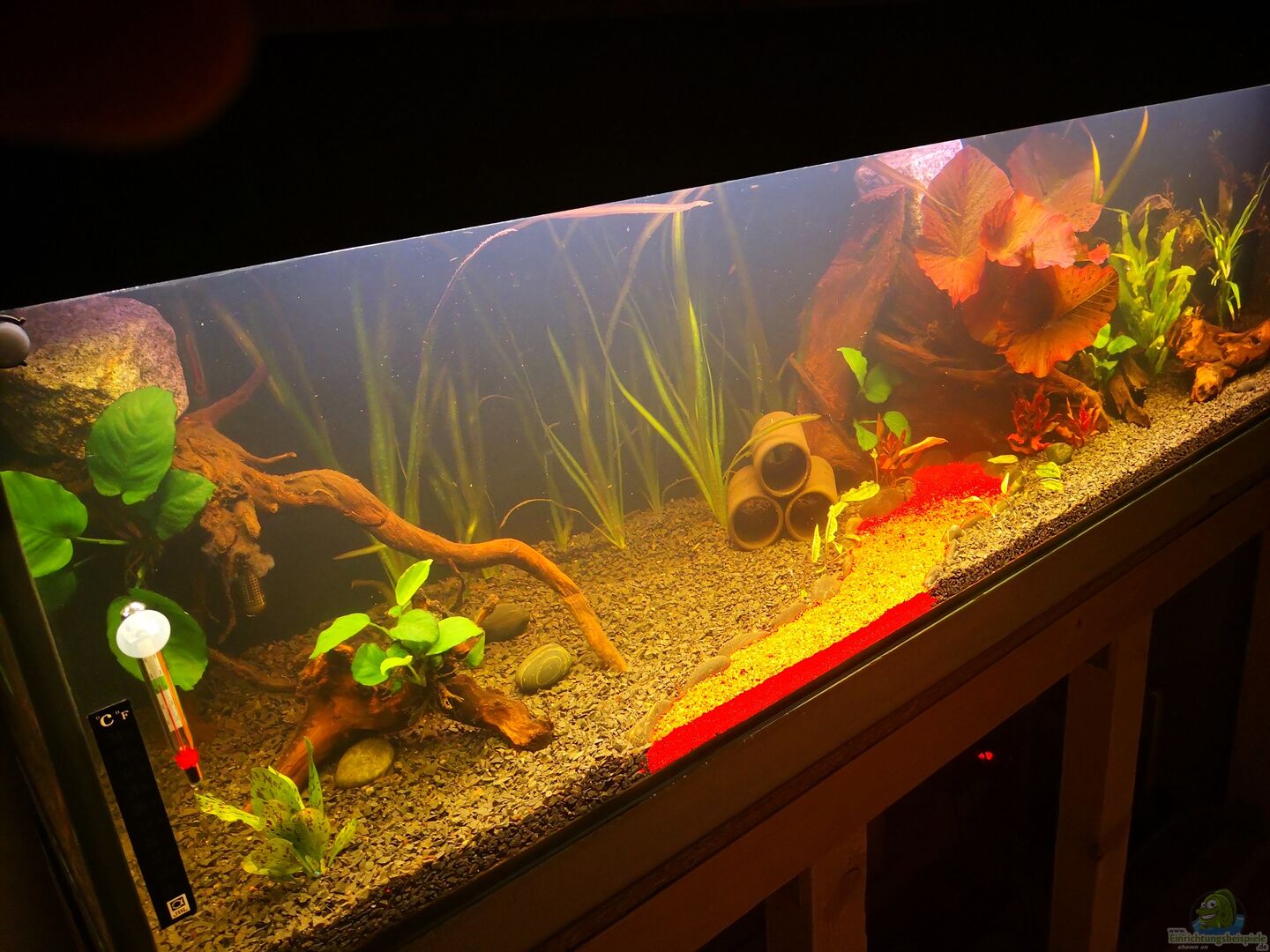 Optisch gefällt mir dein Becken richtig gut. Allerdings bin ich skeptisch, was den Besatz angeht. Ich denke, dass es schon Sinn macht, den Skalaren 60 cm Höhe zu bieten. Allerdings sind deine Tiere noch recht klein und Handlungsbedarf besteht da noch nicht.