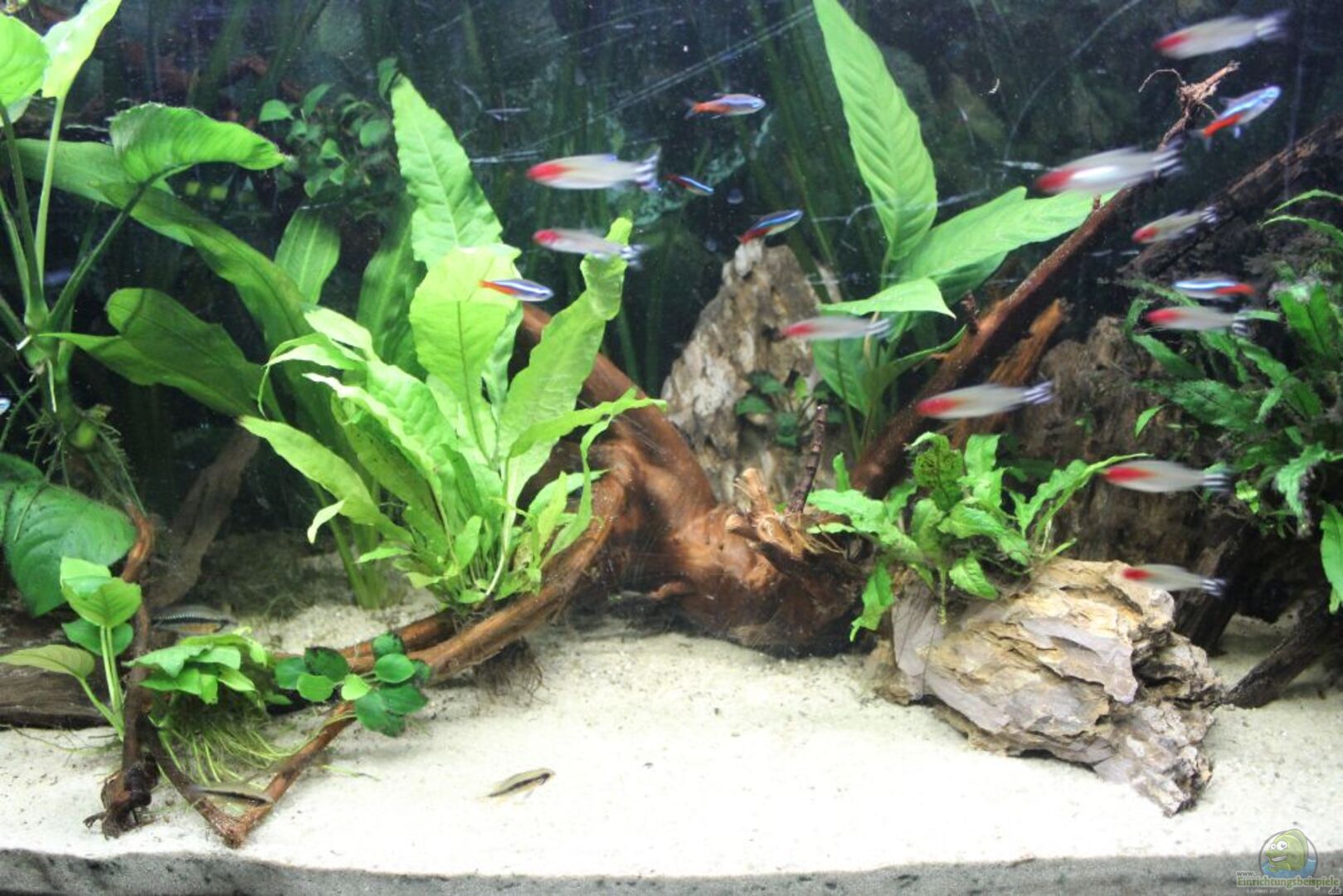 08.01.12: 25%iger Wasserwechsel, das frische Wasser habe ich mit Tetra ToruMin, für naturnahes Schwarzwasser, aufbereitet. Neue Erlenzapfen und Seemandelbaumblätter in Aquarium hinzugegeben und neue Bilder hochgeladen. In Planung ist nun noch ein Schwarm Roter Neon oder Rotkopfsalmler (15 - 20 Tiere)