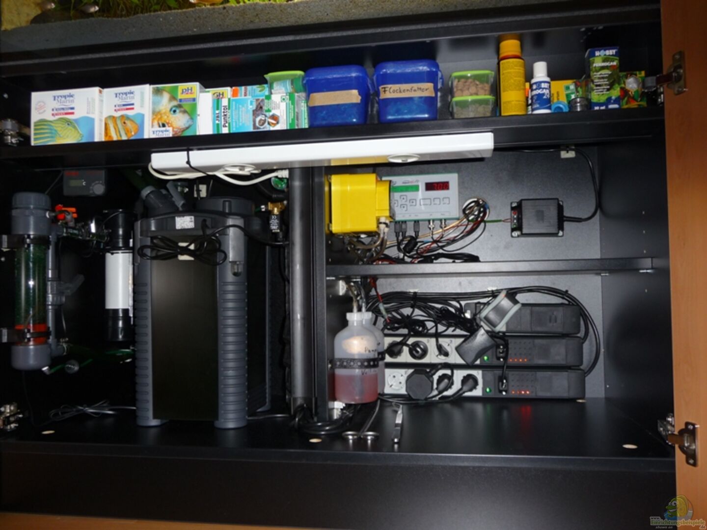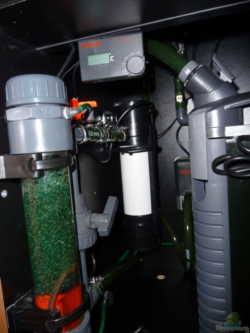 Bodenfluter 25W und Heizung 200W über Eheimfilter. Gesteuert über IKS Midi