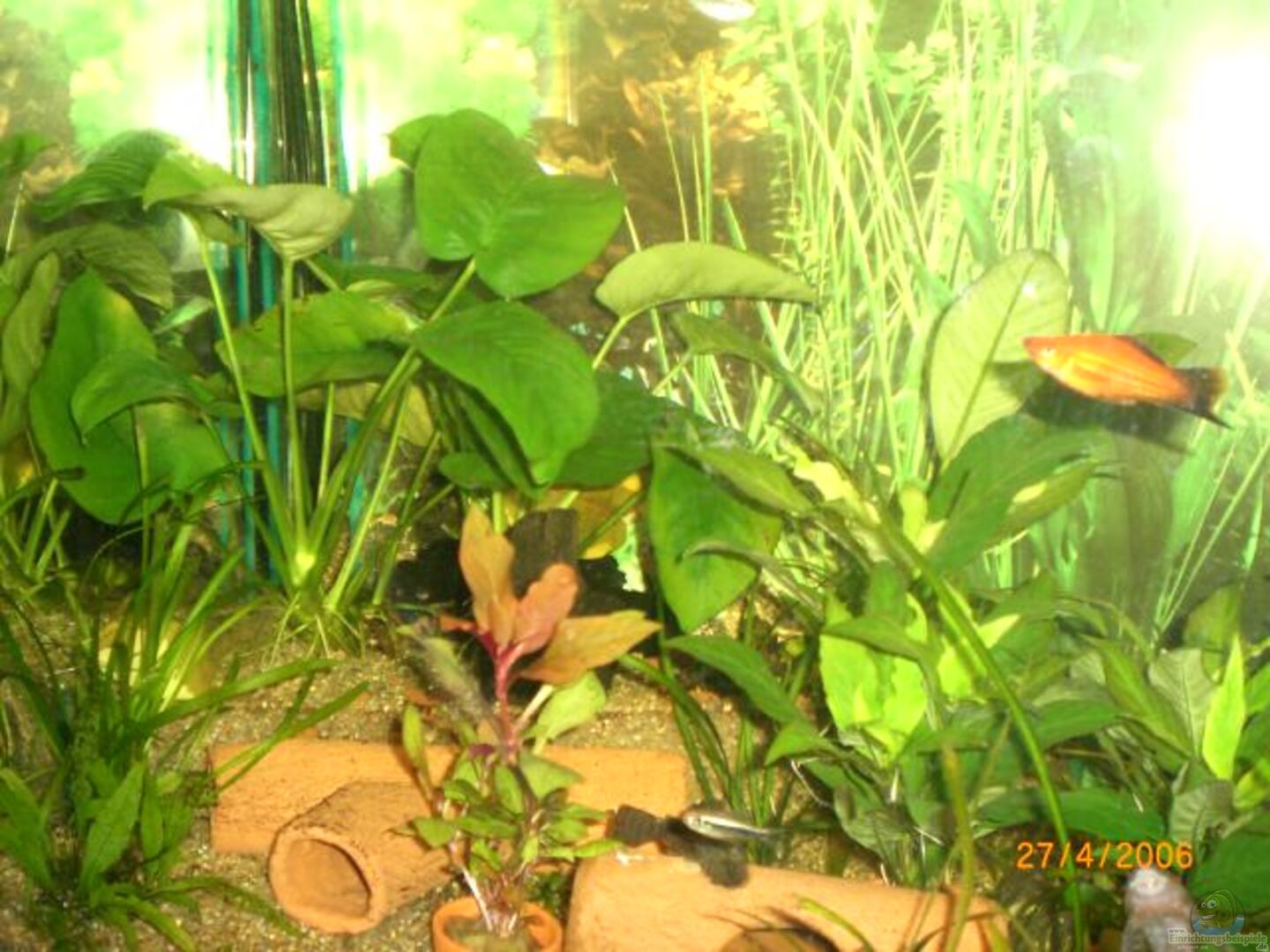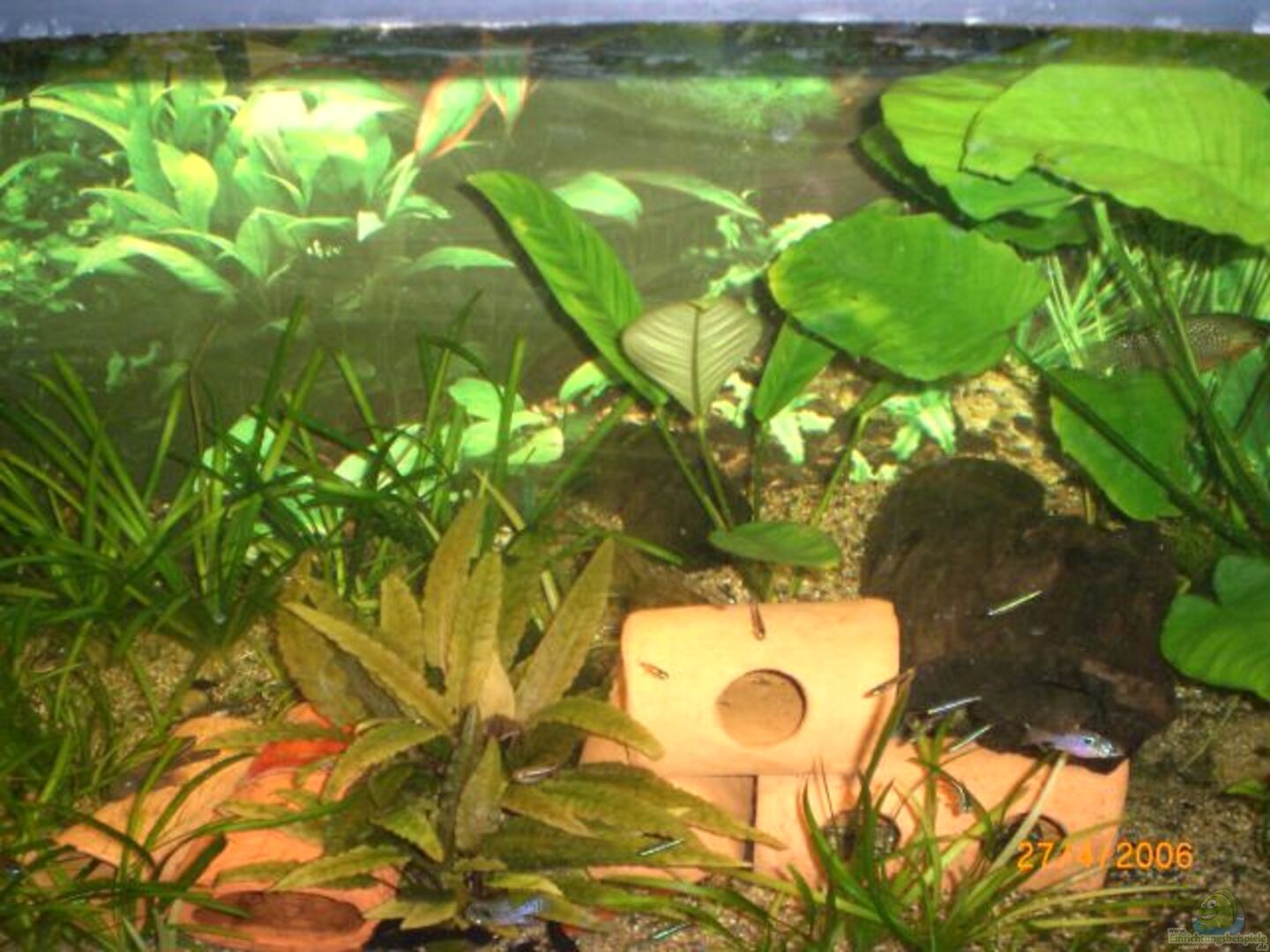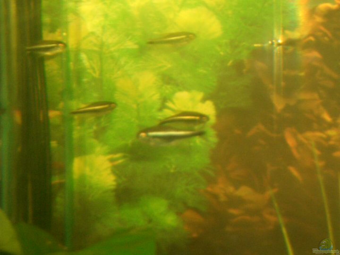 Die schwarzen Neon und die beiden Dornwelse habe ich aus einer Beckenauflösung erhalten und vor den Tode bewahrt. Sie bilden trotz der kleinen Anzahl einen Schwarm. Die 7 roten Neon sind in der Tat ?rigbleiber, sie schwimmen bei den blauen Neon im Schwarm mit und