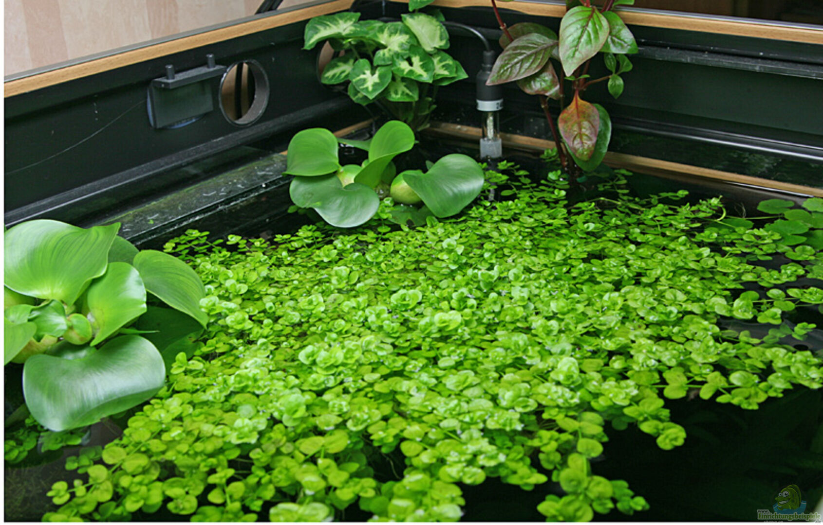 Der Filter läuft momentan gedrosselt mit ca. 1/4 seiner Gesamtleistung, also ca. 400 L/h. Das entspräche einer ungefähren Umwelzung von ca. zweimal Nettoinhalt des Beckens pro Stunde. Genau nachgemessen habe ich es allerdings nicht sondern durch Ausprobieren der Filterdrosselung versucht, einen für das Becken optimalen Kompromiss zwischen Wasserqualität, Pflanzenwuchs und Algenwuchshemmung zu erreichen, was meiner Meinung nach gar nicht so einfach ist. Auch bezüglich der optimalen Anbringung bzw. Ausrichtung des Filterauslaufs und damit verbundenen Strömung im Becken habe ich schon viel ´experimentiert´ und bin letztendlich zu dem Ergebnis gekommen, dass bei meinem Becken der Auslauf von der linken hinteren Ecke auf das linke Drittel der Frontscheibe gerichtet die besten Ergebnisse bringt.