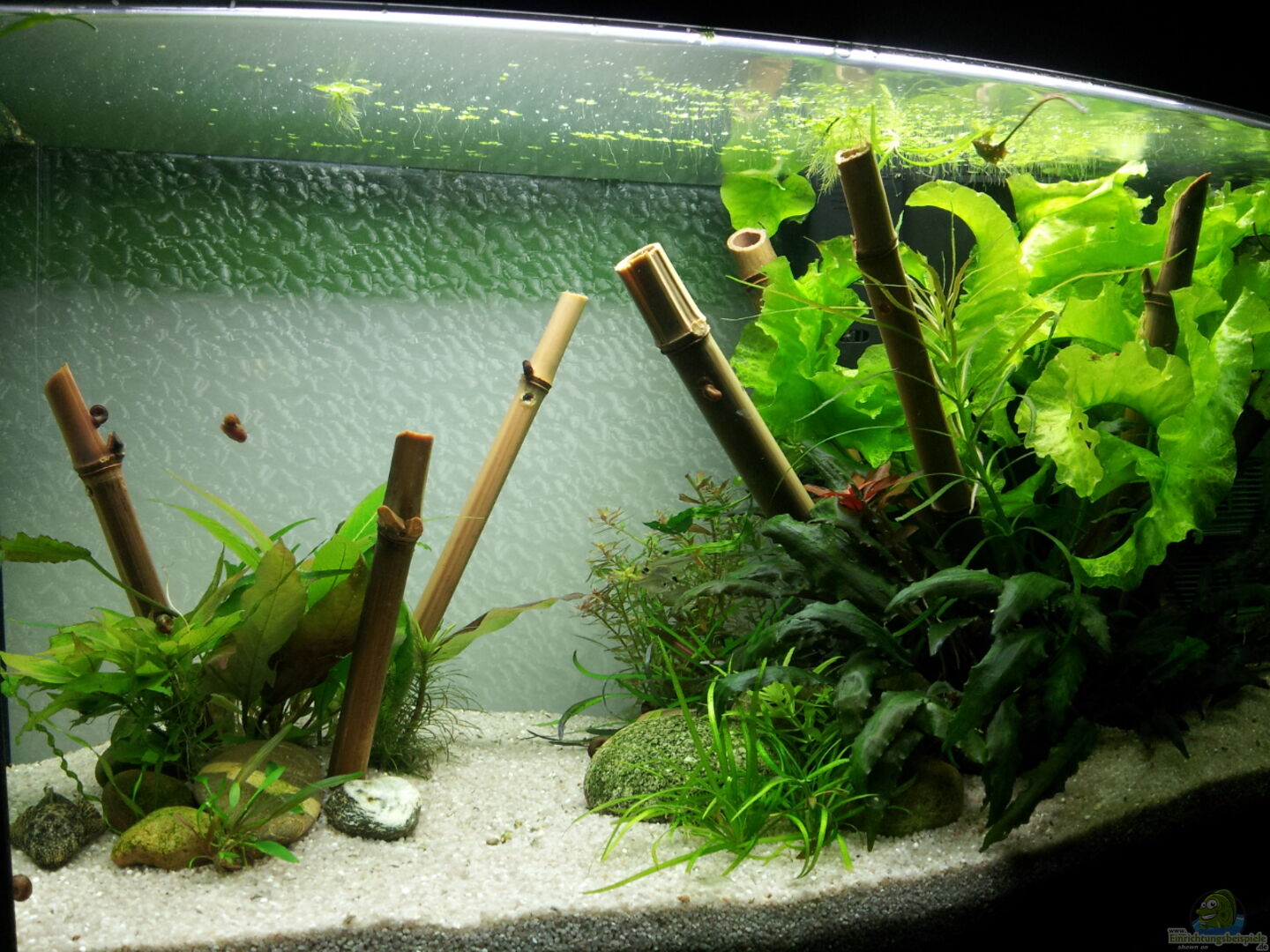 04.11.2012 Eigentlich hatte ich befürchtet dass sich auf dem Bambus ein dichter Bakterienrasen bildet. Es zeigten sich auch schon einige Ansätze, aber ich glaube Die Schnecken, Garnelen und ganz besonders der Ancistrus haben ganze Arbeit geleistet.