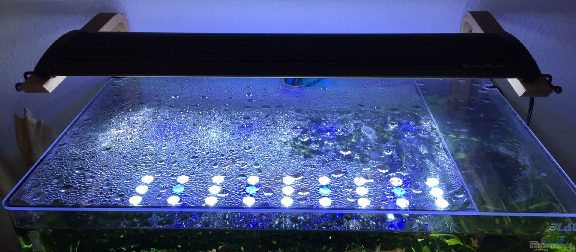 Diese wurde auf zwei Winkeln ca. 10 cm über dem Becken montiert. Inspiration fand ich hierbei beim Fluval Osaka.