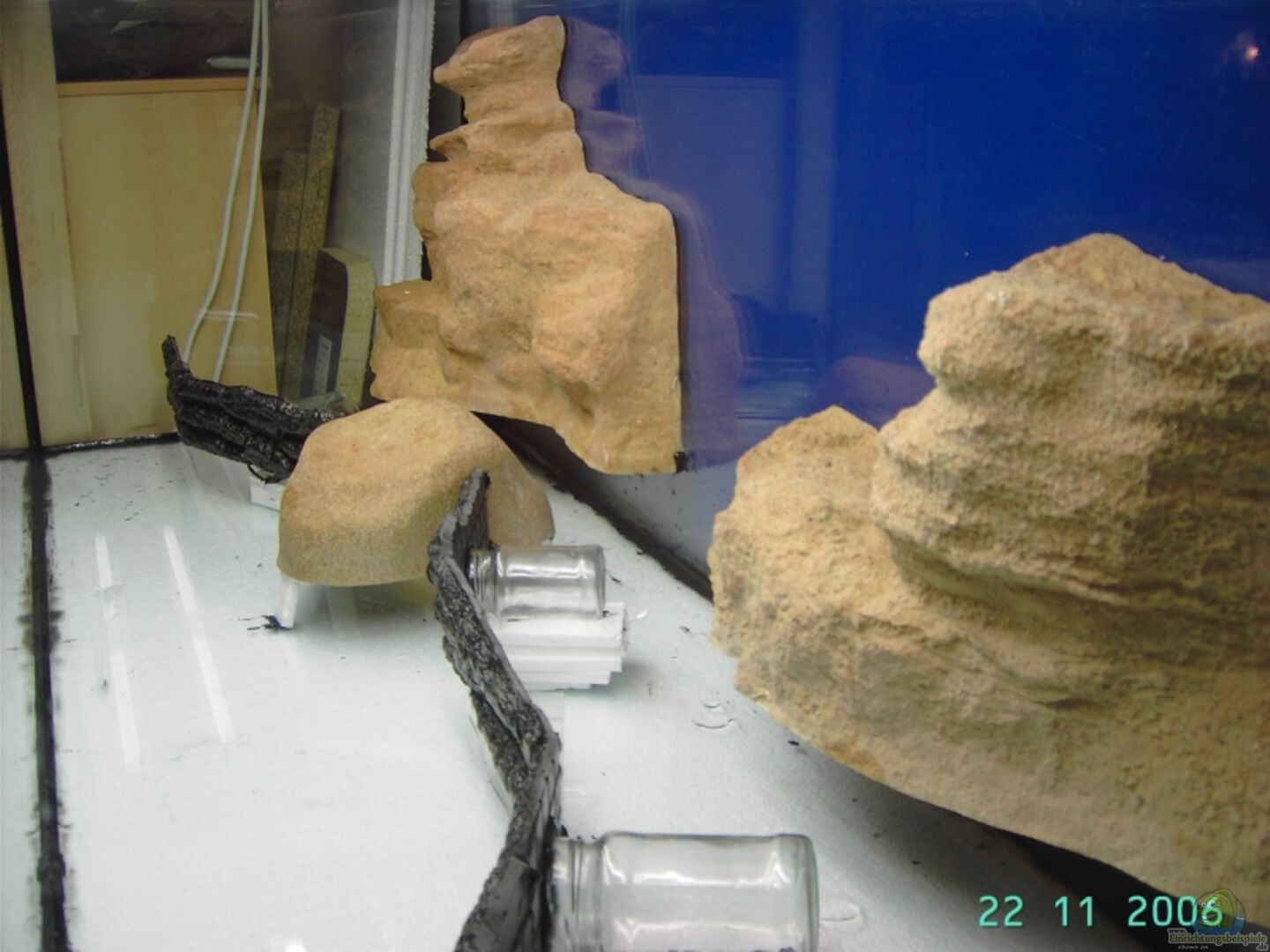 Sehr schöne Optik hat das Becken! Die Einmachgläser sind eine gute idee! In meine GFK-Elemente habe ich auch Höhlen gefräst, diese allerdings (sehr umständlich) mit Styrophor und Sand ausgekleidet. Wieso bin ich nicht auf die Idee mit den Gläsern gekommen!