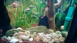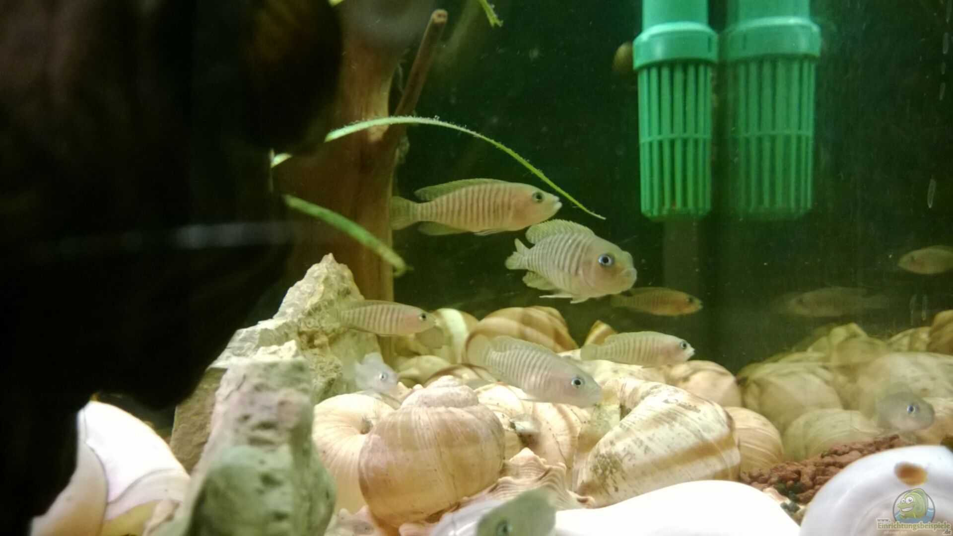 Die aggressivsten Fische im Becken sind die Schneckenbuntbarsche wenn ein anderer zu nahe kommt. Das haben aber schon alle kapiert.