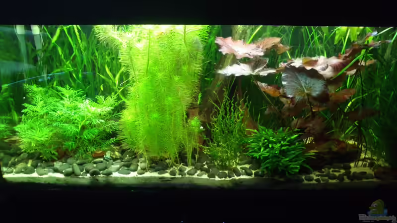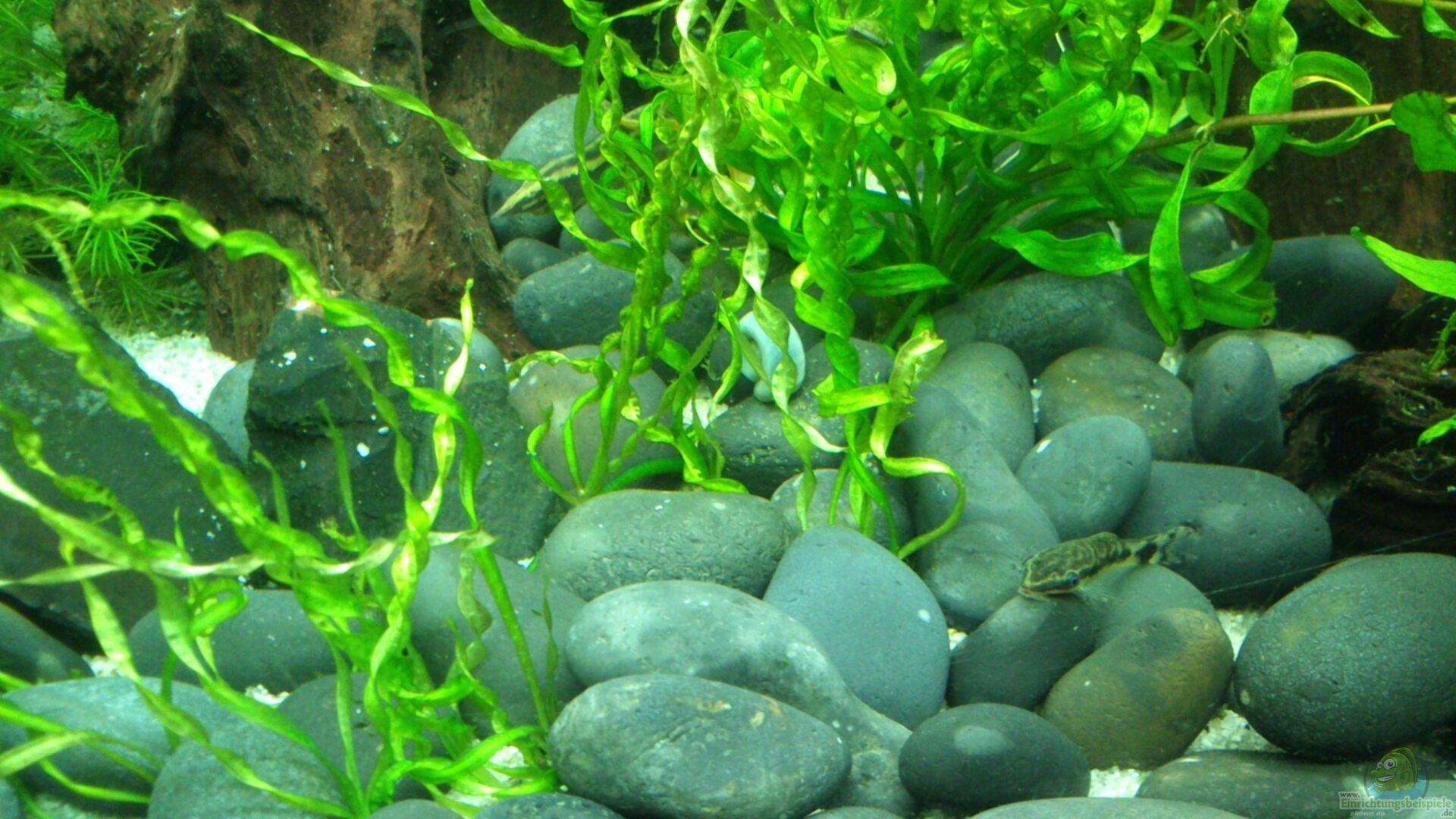 30.03.2013: Am 23.03. ist ein L134 Rio Tapajos bei mir eingezogen. Den Boden habe ich mit dunklen Kieselsteinen bedeckt. Sessiliflora Limnophila zurückgeschnitten.