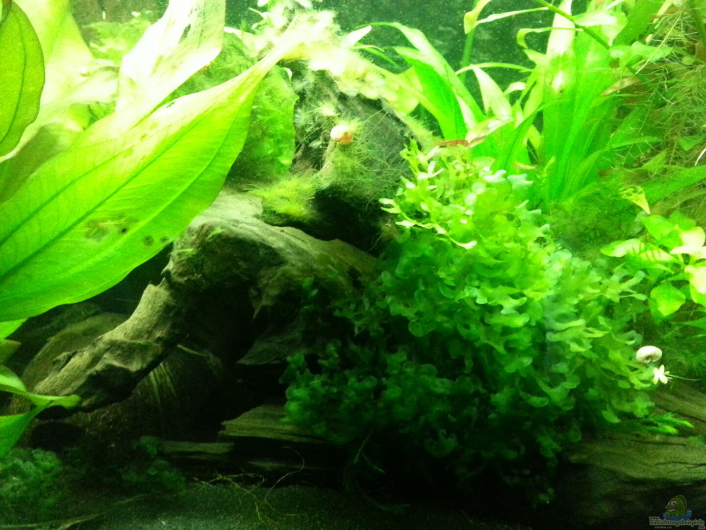 Werde jetzt übers Wochenende weg sein. Nächste Woche dürfen dann mal ein paar Garnelchen einziehen. Die machen nicht viel Dreck und können schon mal über die zahlreichen Algen herfallen. Und sich ein bi??chen in dem nun schon gut verkrauteten Becken vermehren, solange noch keine Fische da sind.