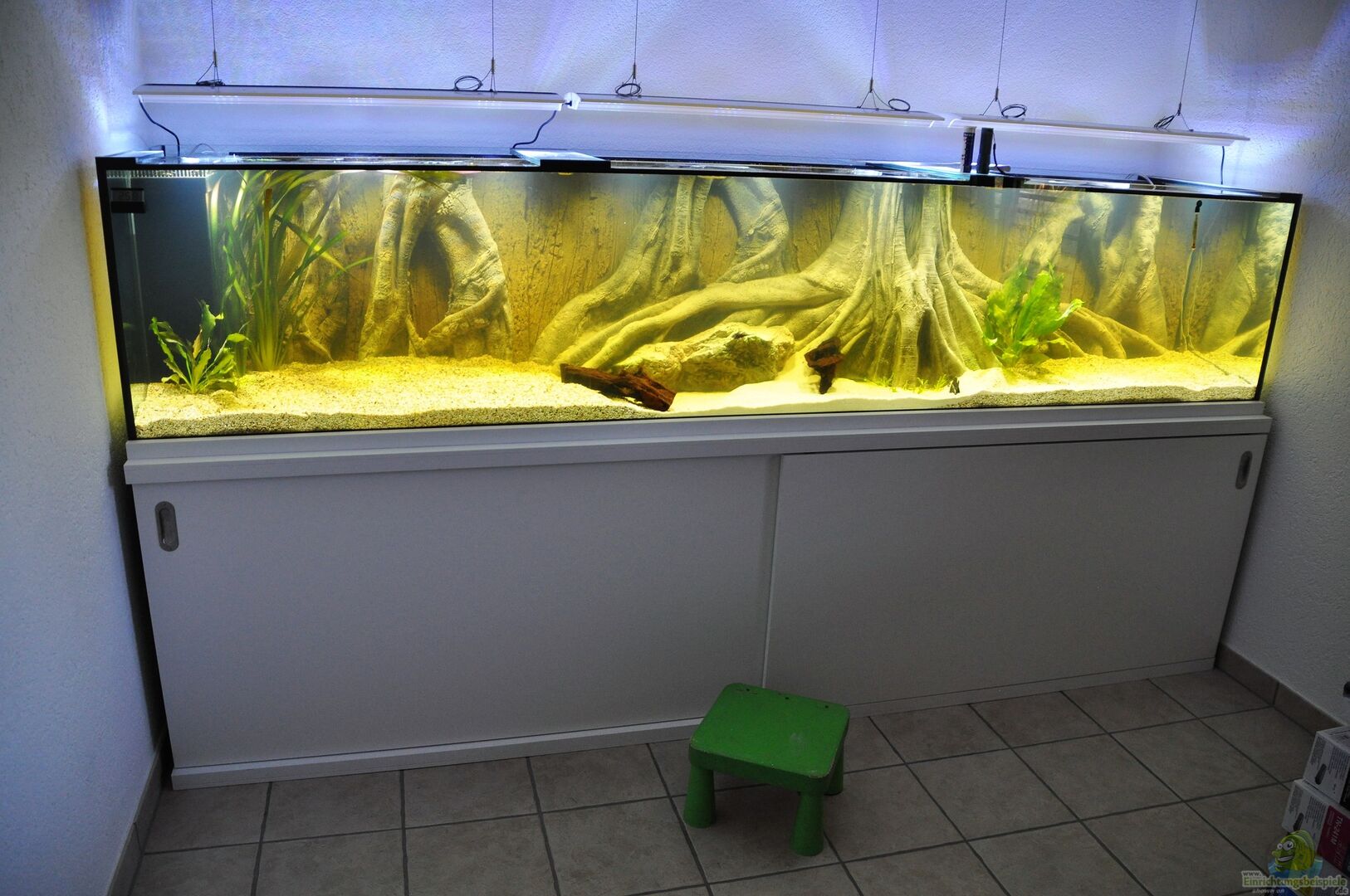 Für mich ist dieses Becken ein Quantensprung in der Aquaristik. Seit knapp 20 Jahren war das Stubenbecken (1, 3m x 0, 6m x 0, 6m) mein aquarianisches Zuhause. Ein Teil der Fische und alle Pflanzen stammen aus diesem alten Becken.