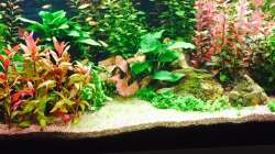 Update 26.07.2015: Ich habe das Becken etwas umgestaltet und einen helleren Kies in 2cm Höhe aufgefüllt. Dieser deckt nun das leider an einigen Stellen beim Wassereinfüllen hochgekommene Düngesubstrat ab, das mir schon seit jeher auf die Nerven ging. Au??erdem hatte sich der Rasen auf der Vorderseite des Beckens leider nicht wirklich dicht entwickelt, sodass ich ihn nun mit einigen der alten Stecklinge nochmal neu gesetzt habe. Falls er jetzt auch nicht dicht wird fliegt er raus.