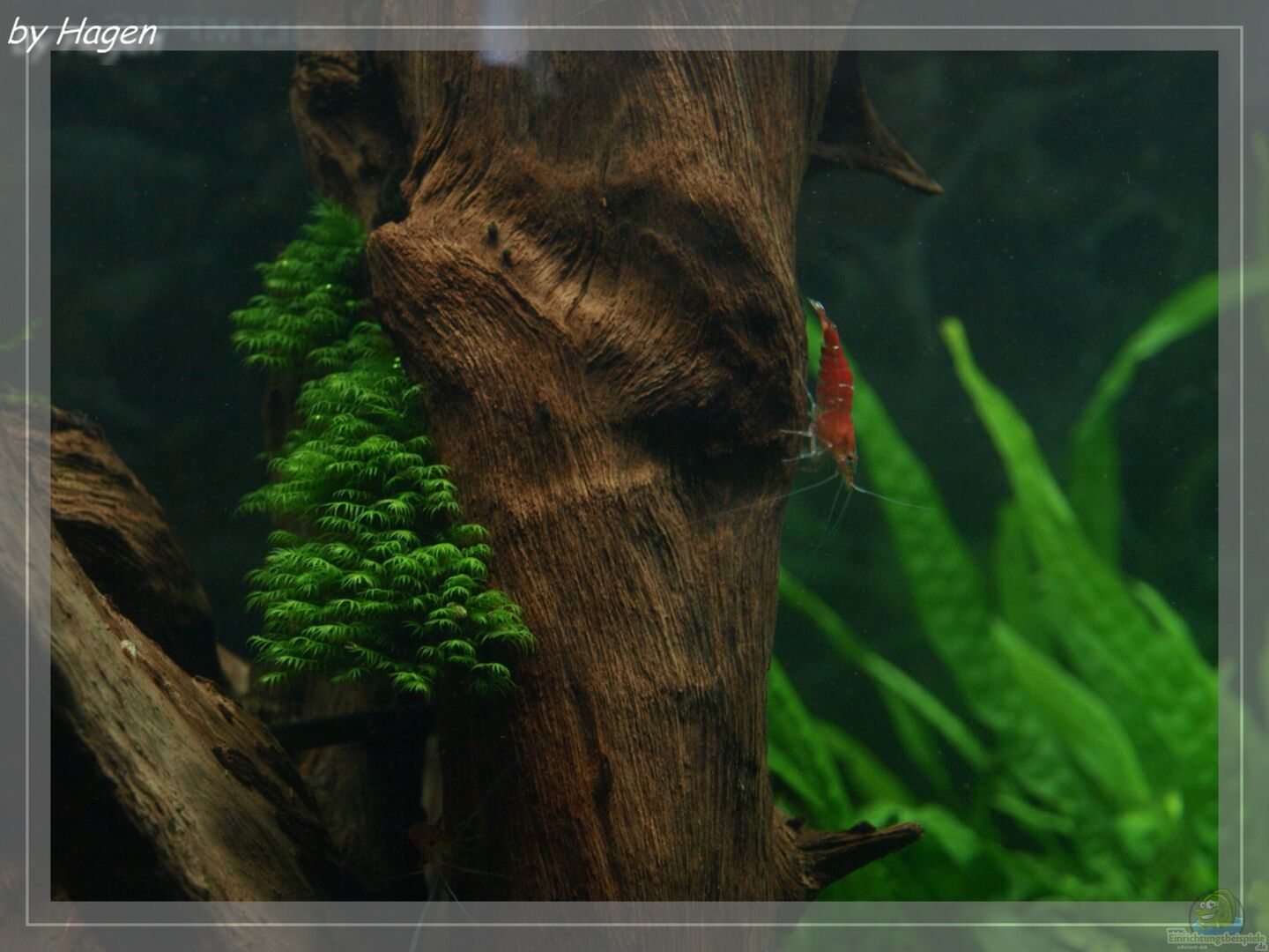 Auch die beiden Garnelenstämme waren in dieser Form so nicht beabsichtigt. Eigentlich sollten die Crystal Red sich alleine hier etablieren, aber mit dem Umsetzen von Moos und anderen Pflanzen hab ich wahrscheinlich auch die RedFire Garnelen hier wieder eingeschleppt. Solange ich beobachten kann, dass sich die ersteren wieter vermehren können und immer wieder Jungtiere zu sehen sind, bleiben beide. Andernfalls wird der Beckenvirus dafür sorgen, dass die Crystal Red ein noch vorhandenes 50l Becken beziehen können. ( Vielleicht findet sich sogar am Arbeitsplatz mit Genehmigung ein geeigneter Platz und sorgt in Folge dafür, den Beckenvirus zu verbreiten*g)