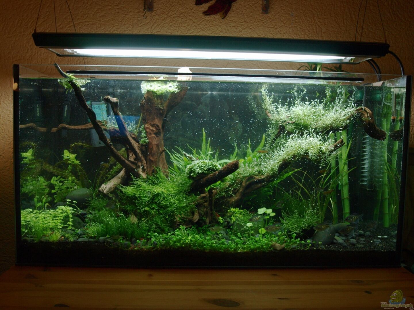 Alle eingesetzten Pflanzen kommen mit der angebotenen Lichtmenge gut aus. Einzig Bacopa caroliniana kümmert, veralgt und wurde zeitweise in ein anderes Becken ausgelagert.