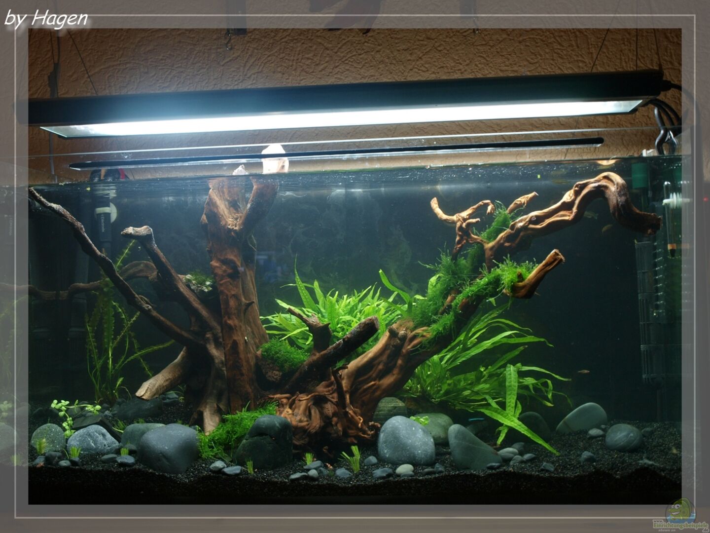 Dem Algenwachstum bin ich unter Verwendung von AlgExit, aber vor allem mit den eingesetzten Posthornschnecken erfolgreich begegnet. Den Wurzelast auf den ich sie beim Einsetzen plazierte haben sie innerhalb der ersten 4 Tage blank gefressen.