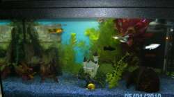 05.01.2010 - Fische raus, Deko und Pflanzen raus, Wasser raus, Kies raus, Bodensatz bleibt, Blauen Kies rein (natürlich gewaschen), 40 % Frisches Wasser, 60 % Aquarienwasser (vom 02.01.10), hoffen ob genug Nitrit abgebaut wird. Natürlich Filter NICHT gewaschen, lediglich im neuen Wasser leicht ausgepresst. Das war vielleicht eine Arbeit. Ich will mir gar nicht vorstellen wie es beim 270 Liter Becken ist.