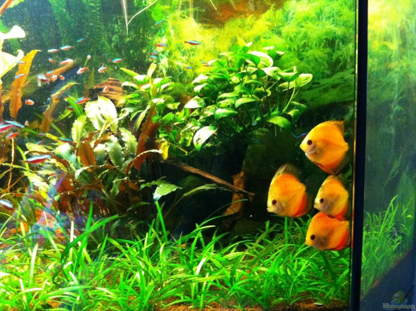 hab mir mittlerweile neue Leuchtbalken anfertigen lassen. (siehe Bild) hatte vorher nur einen und jetzt 2 Stück. Musste dafür tief in die Tasche greifen aber das wars mir wert. Sind jetzt T5 Leuchten und nicht mehr wie vorher T8. Es sind auch 100 Rote Neons dazu gekommen und ich hab mit mittlerweile 4 Diskusfische zugelegt. Ist aber noch nicht sehr lange her. Sehen aber toll aus :) so ich hoffe das ich hier wieder öfters reinschreibe