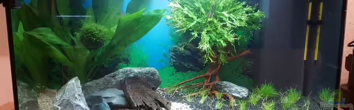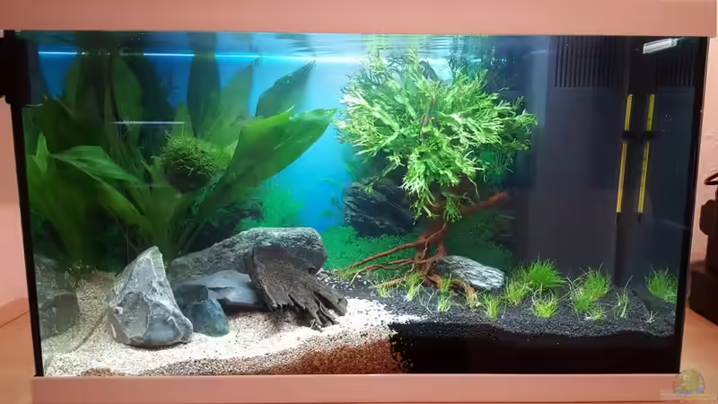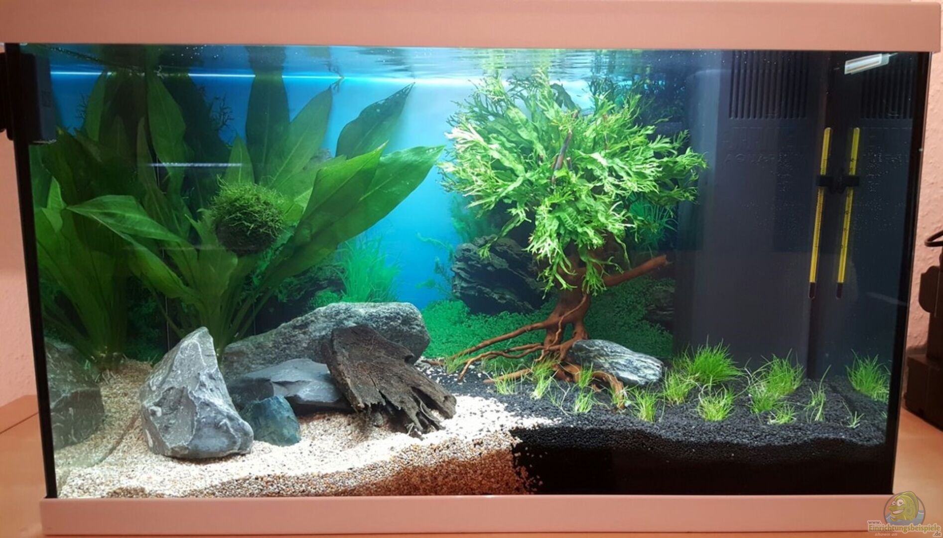 Ursprünglich sollte dieses Becken für die Guppymädchen sein (siehe erster und dritter Streich unserer Aquarien). Da sie aber sehr zeitnah ein neues Zuhause gefunden haben, sind die Welse derzeit alleine.